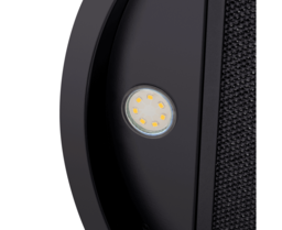 Удобное кнопочное управление вытяжкой позволяет установить один из 3-х режимов скорости вентилятора и включить 2 светодиодных элемента (2,2 Вт), расположенных по бокам фильтра.