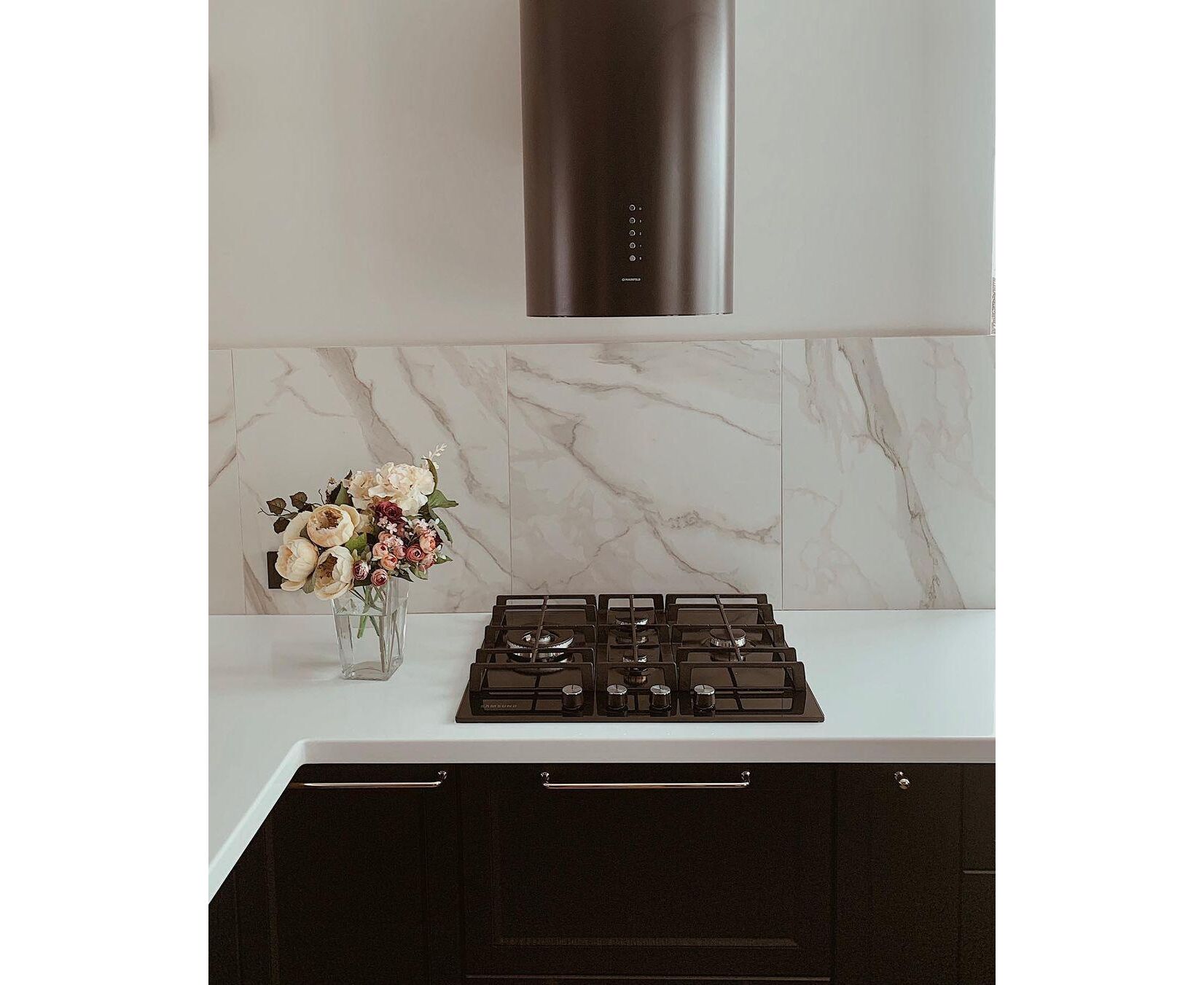 Неординарная вытяжка благодаря интересному исполнению подчеркнет неповторимый дизайн вашей большой кухни (до 40 кв.м). В модели реализованы две возможности эксплуатации: режим прямого отвода загрязненного воздуха в вентиляционную шахту или режим рециркуляции воздушных масс и их очистки с помощью сменных угольных фильтров.