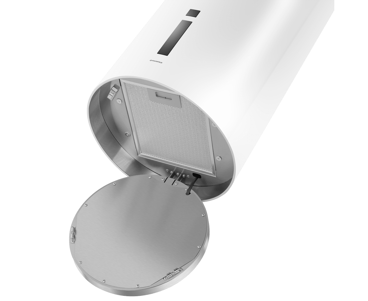 Уникальная вытяжка благодаря неординарному исполнению подчеркнет неповторимый дизайн вашей большой кухни (до 40 кв.м). В модели реализованы две возможности эксплуатации: режим прямого отвода загрязненного воздуха в вентиляционную шахту или режим рециркуляции воздушных масс и их очистки с помощью сменных угольных фильтров.Корпус цилиндрической формы, сделанный из нержавеющей стали с термостойким покрытием, монтируется на стену над варочной поверхностью. Специальный многослойный жироулавливающий алюминиевый фильтр, расположенный в нижнем торце, легко снимается и полностью разбирается, что сильно упрощает его чистку.Сенсорное управление с подсветкой позволит выбрать один из 4-х режимов работы вентилятора, установить таймер и включить 4 светодиодные лампочки, расположенные по бокам от фильтра.Мощность мотора составляет 260 Вт. Максимальная производительность вытяжки достигает 1000 м3/ч. Тихая работа и высокая эффективность вытяжки обеспечиваются периметральным принципом втягивания воздуха и особой конструкцией. Уровень шума при самой высокой скорости работы всего 52 Дб.