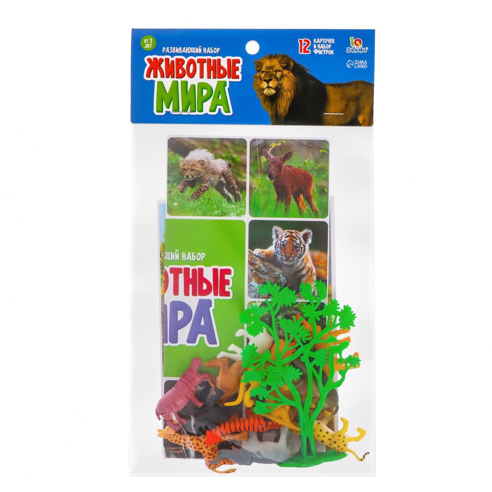 Набор фигурок животных с обучающими карточками «Животные мира»