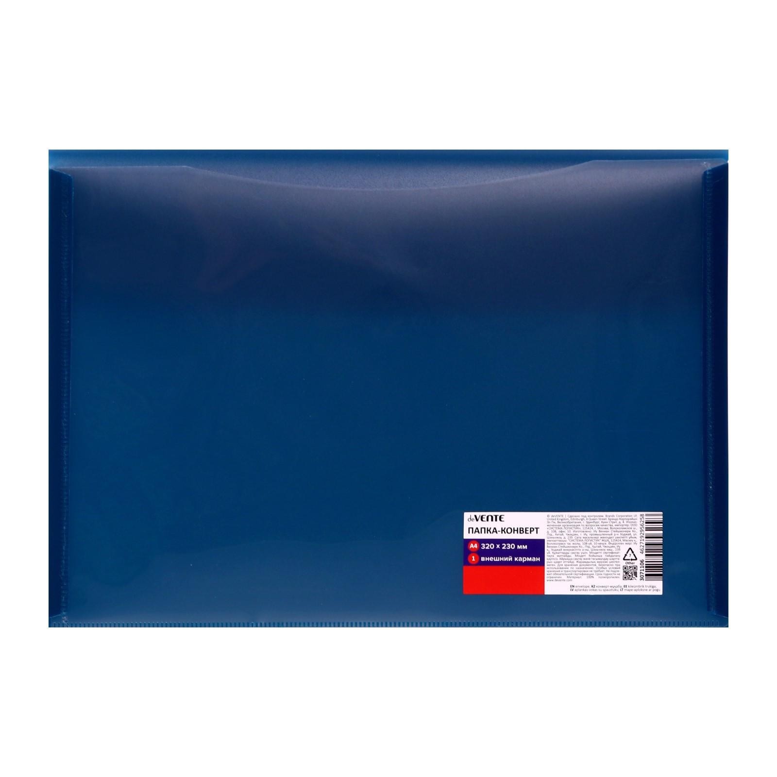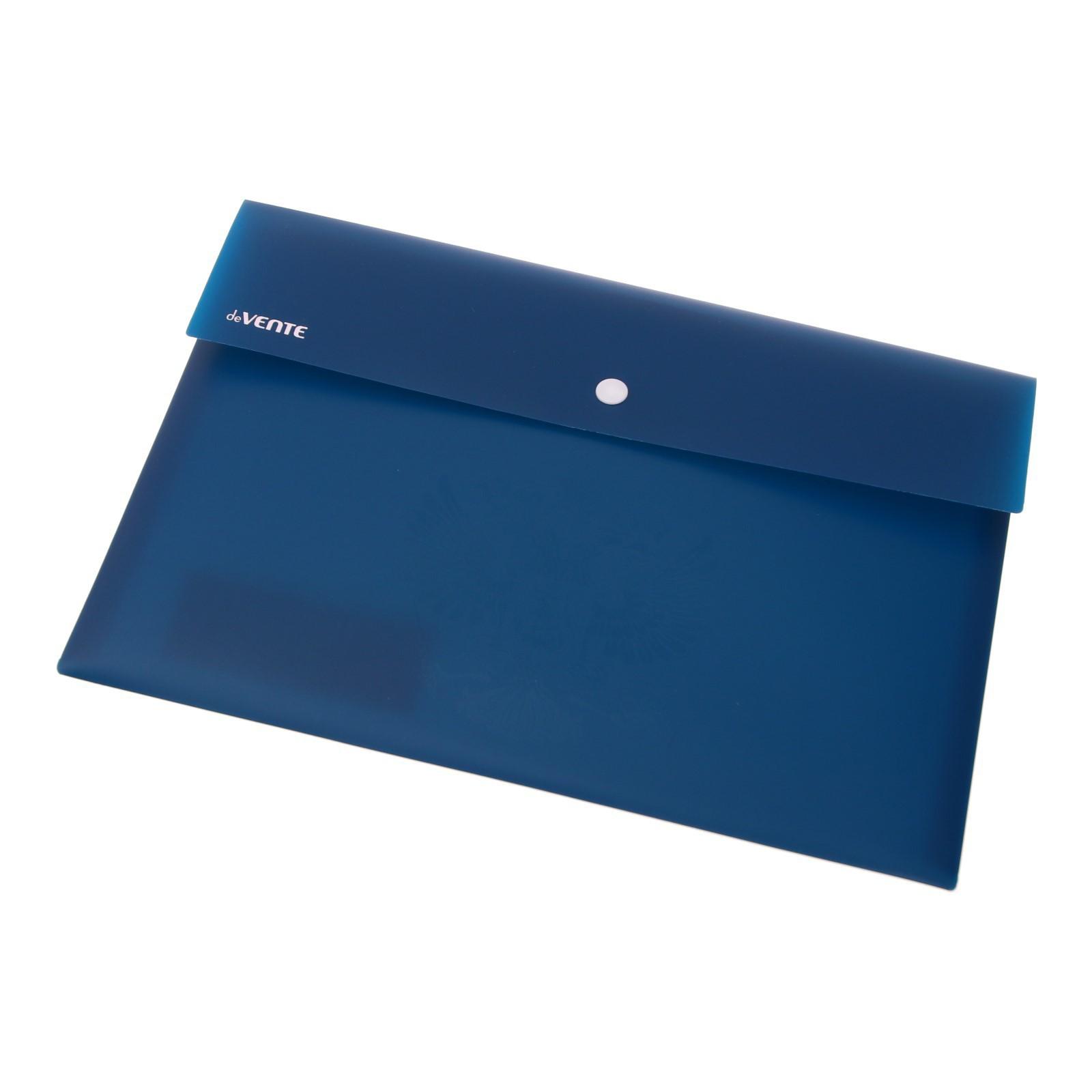 Папка-конверт на кнопке "deVENTE. Герб" A4 (320x230 мм) 350 мкм, фактура "песок" выборочный лак, внешний карман 180 мм, индивидуальная маркировка, темно-синяя.