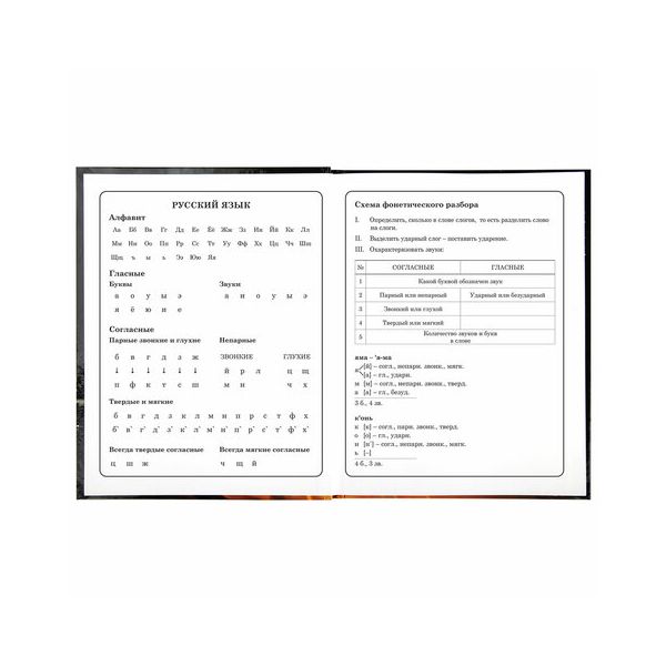 Предназначен для учащихся начальных классов. Твердая обложка надежно защищает бумагу и долго сохраняет привлекательный внешний вид. Благодаря глянцевой ламинации краски на изображении становятся более яркими и насыщенными, исключается возможное истирание рисунка. Внутренний блок содержит 48 листов и состоит из офсетной белой бумаги плотностью 60 г/м2. В справочном материале собраны основные подсказки для учащихся.