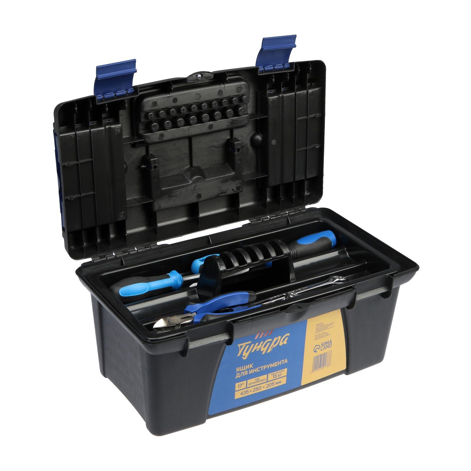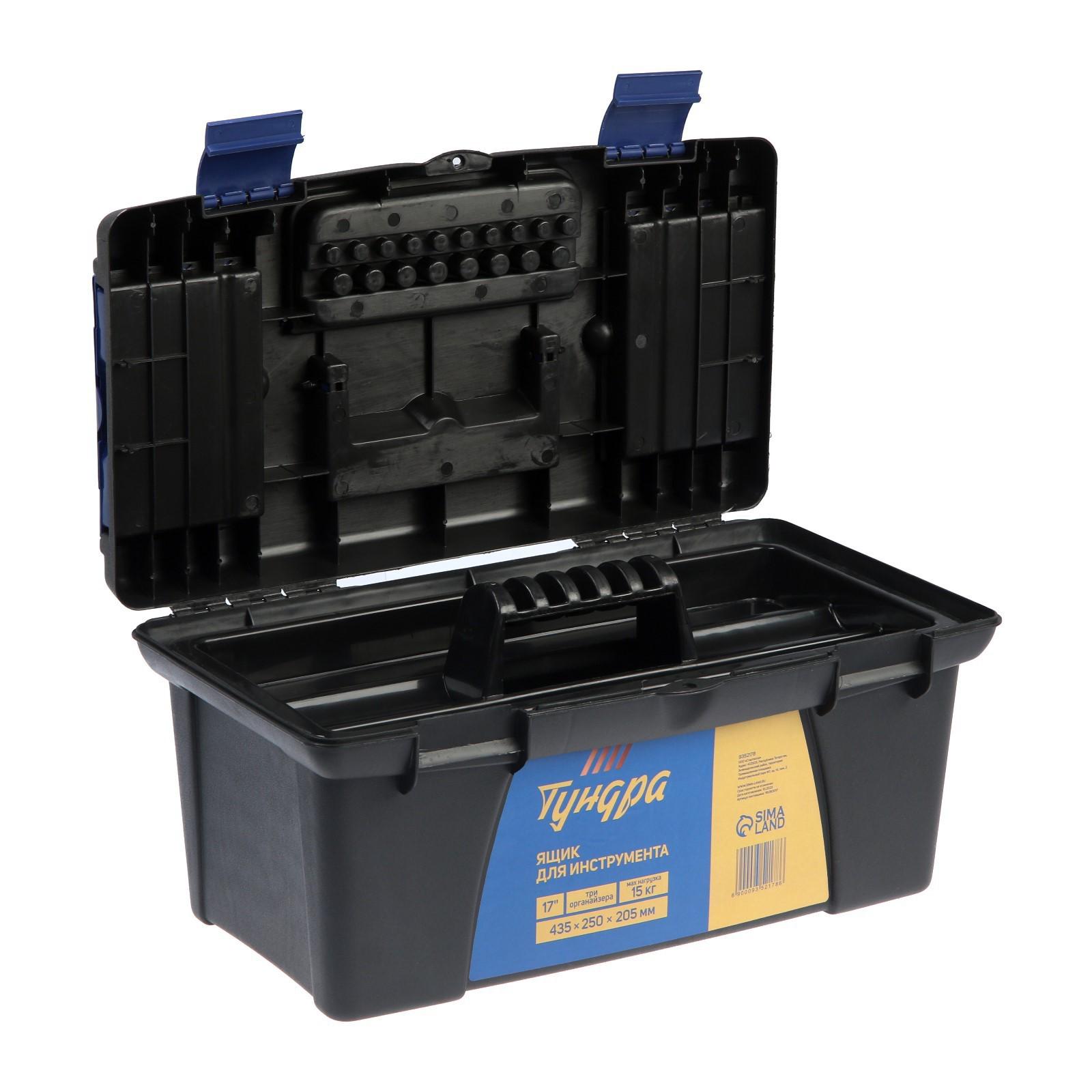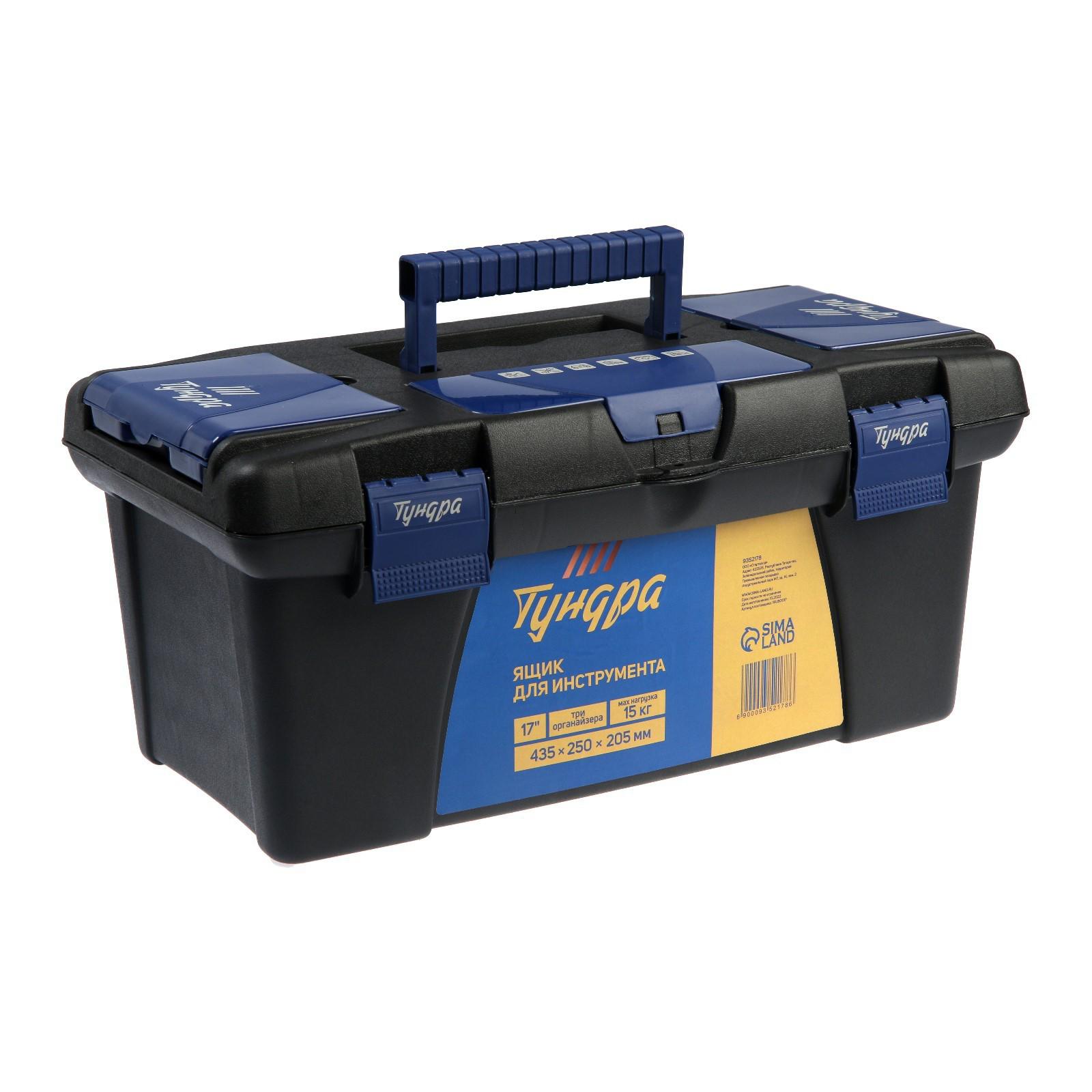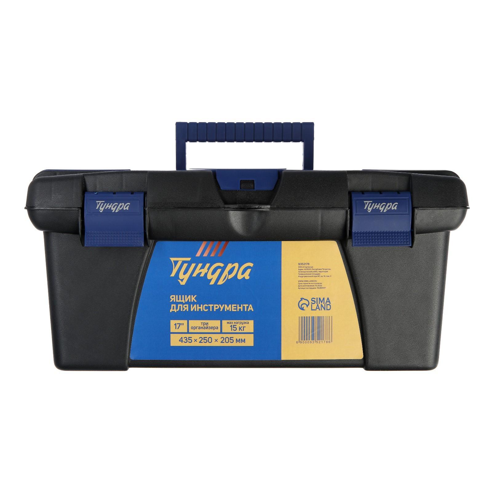 Ящик для инструмента ТУНДРА, 17", 435 х 250 х 205 мм, три органайзера, мах нагрузка 15 кг