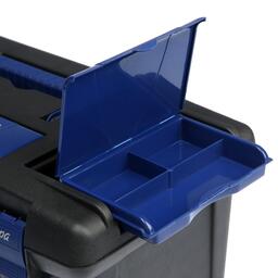 Наличие лотка позволит разделить внутреннее пространство на две части. Крышка оснащена тремя съёмными органайзерами для размещения мелких деталей.