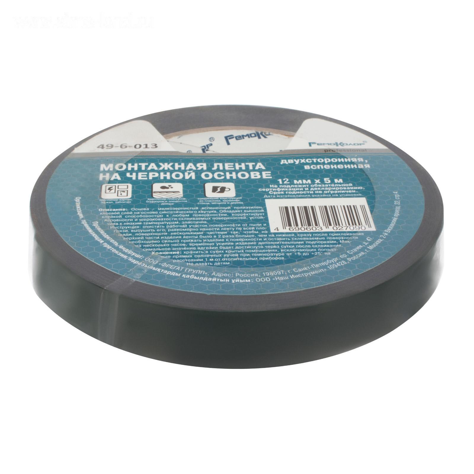 Лента двухсторонняя "РемоКолор" 49-6-013, на черной основе, вспененная, 12 мм х 5 м