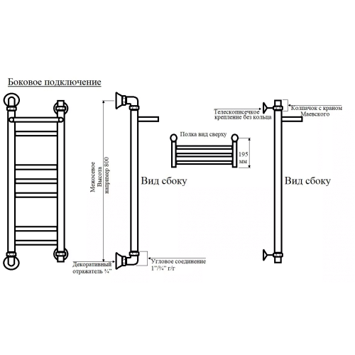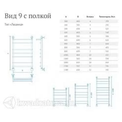 Полотенцесушитель Маргроид Вид 9 боковое подключение с полкой, форма - лесенка, для любого по стилю интерьера ванной комнаты.
