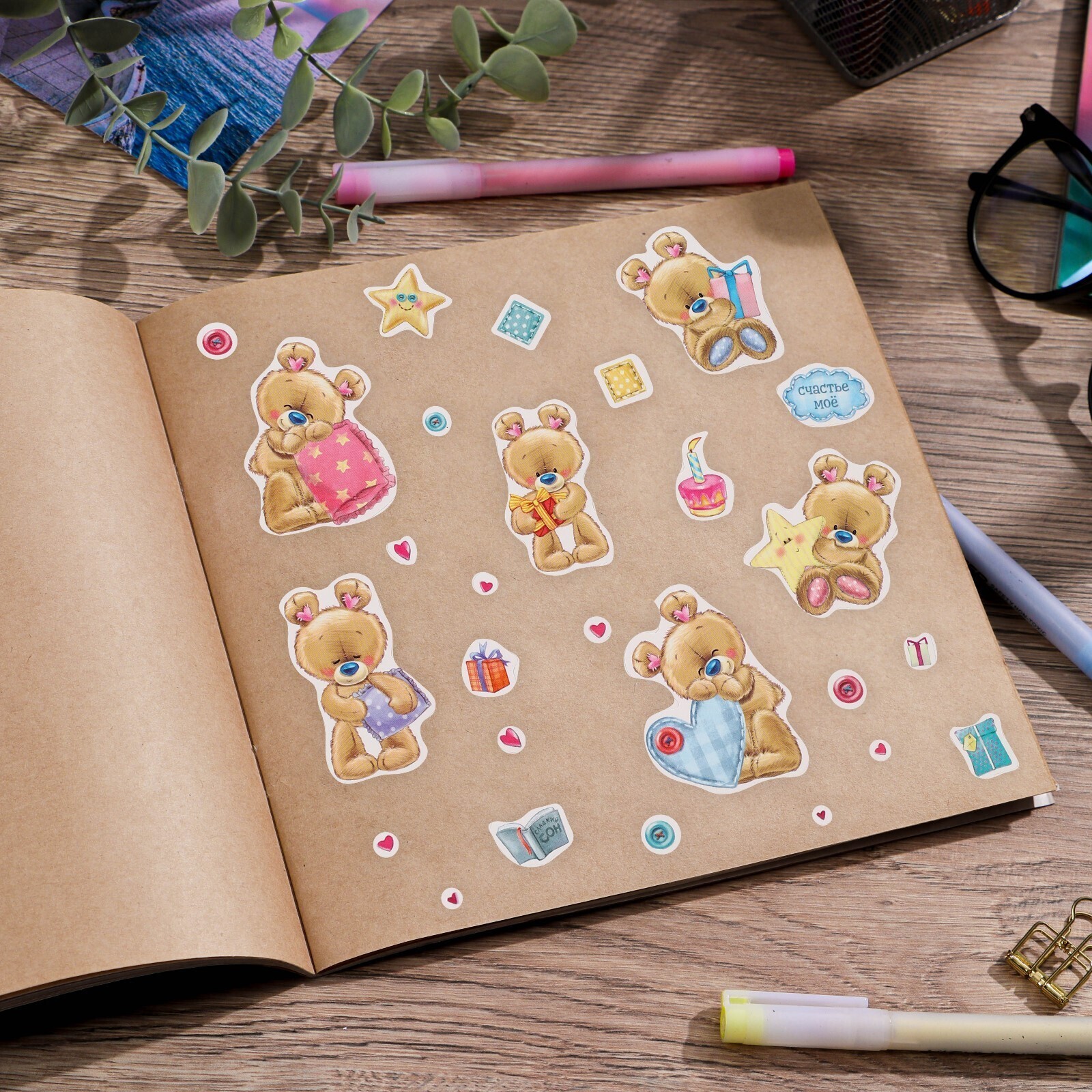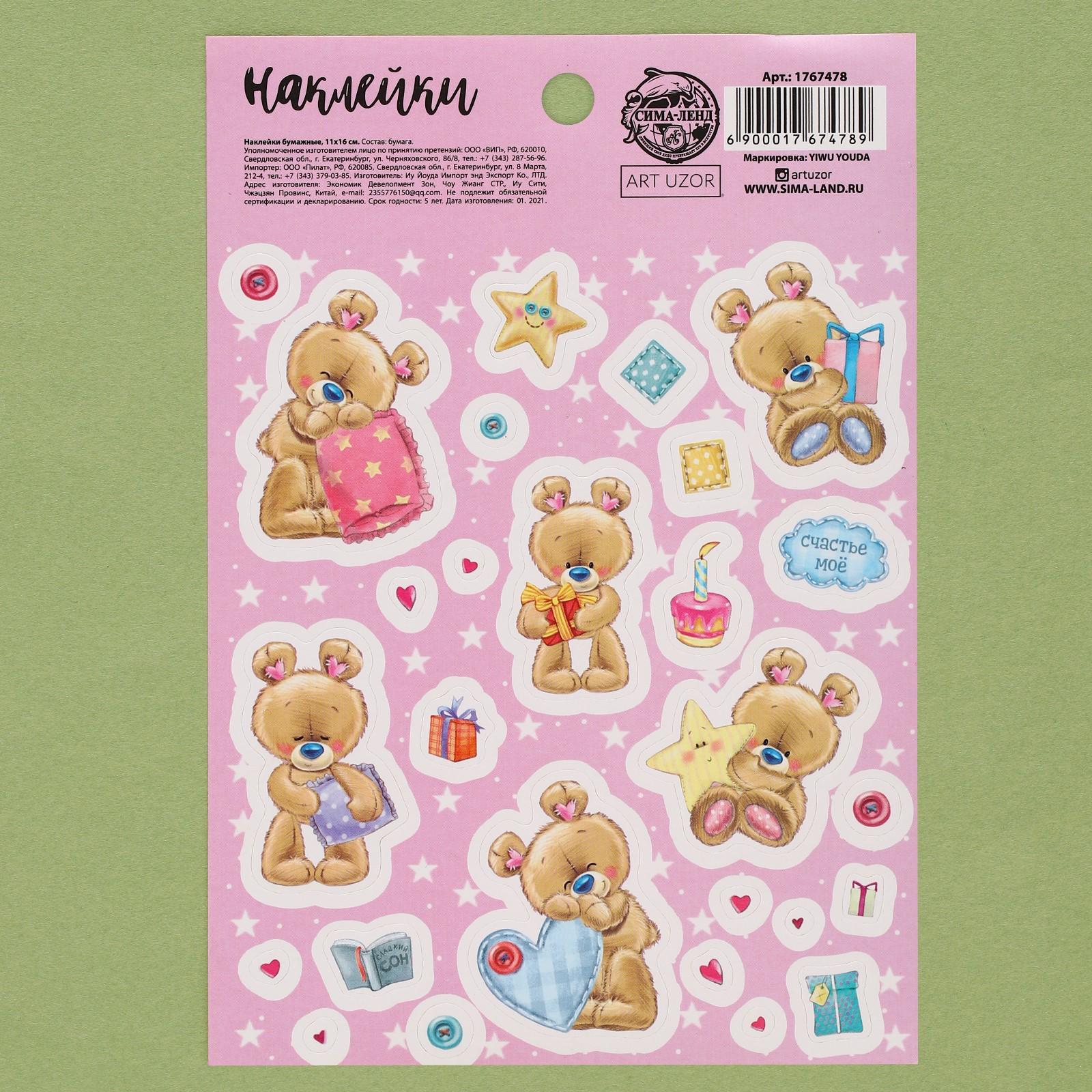 Бумажные наклейки «Мишутки», 11 х 16 см