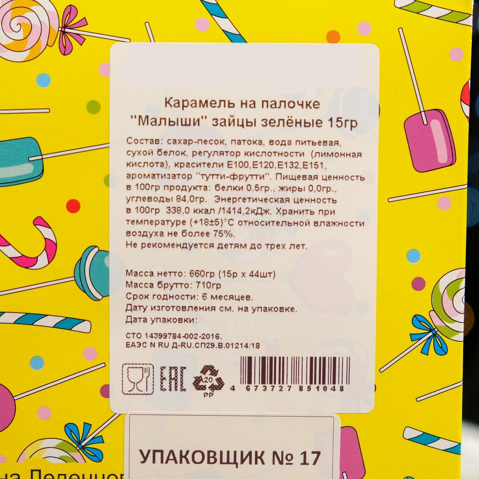 Карамель на палочке "Малыши", зайцы зелёный, 15 г