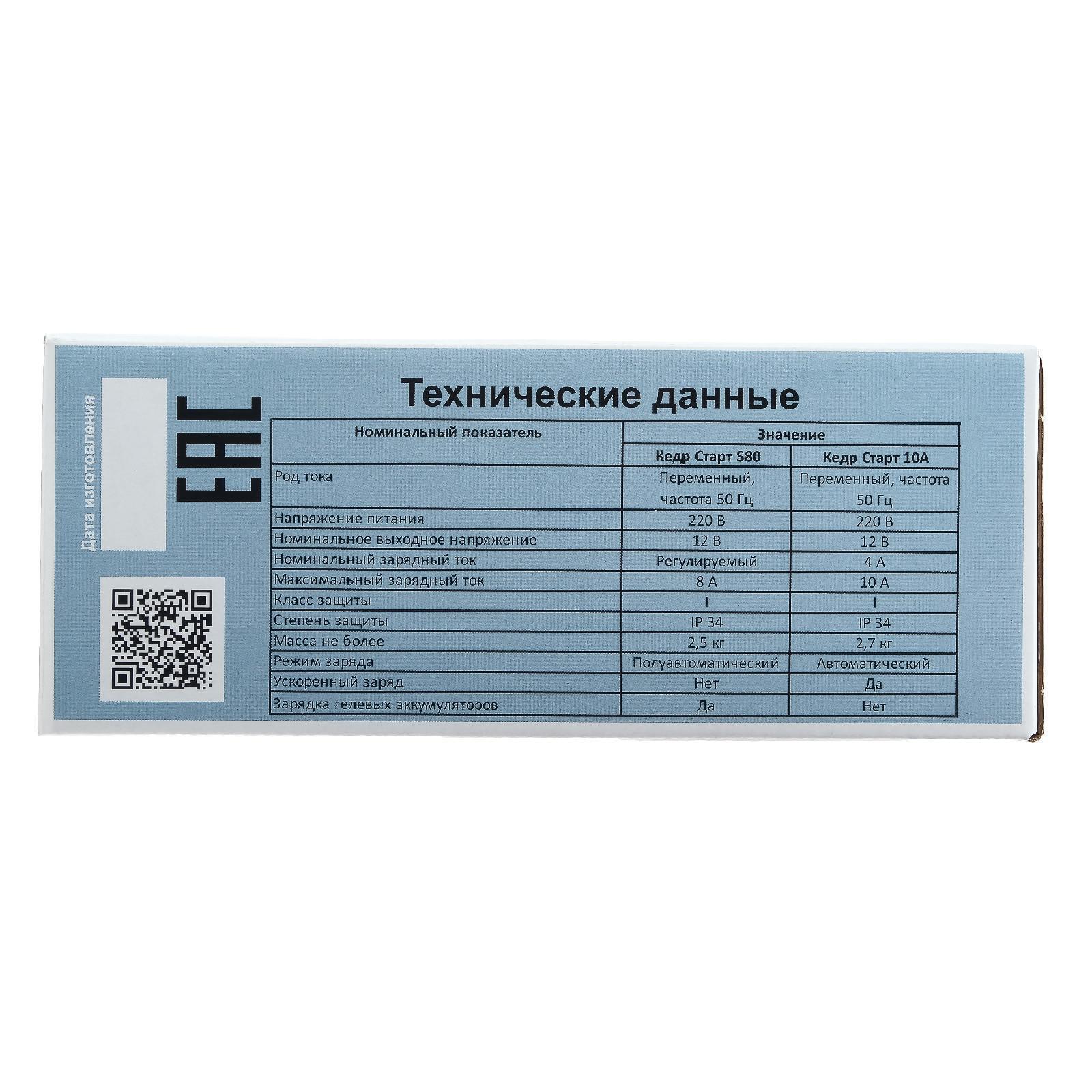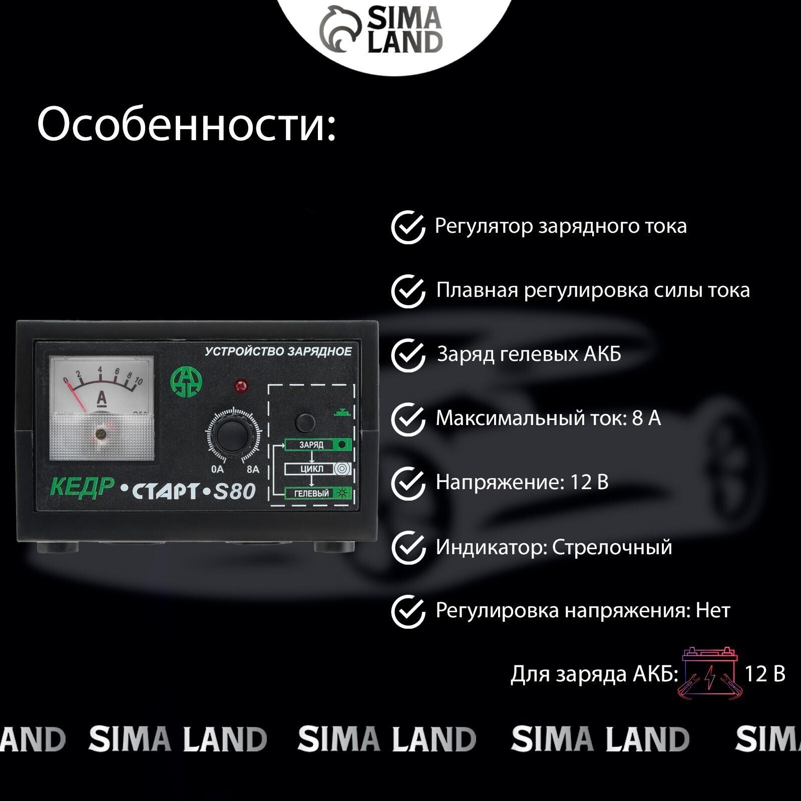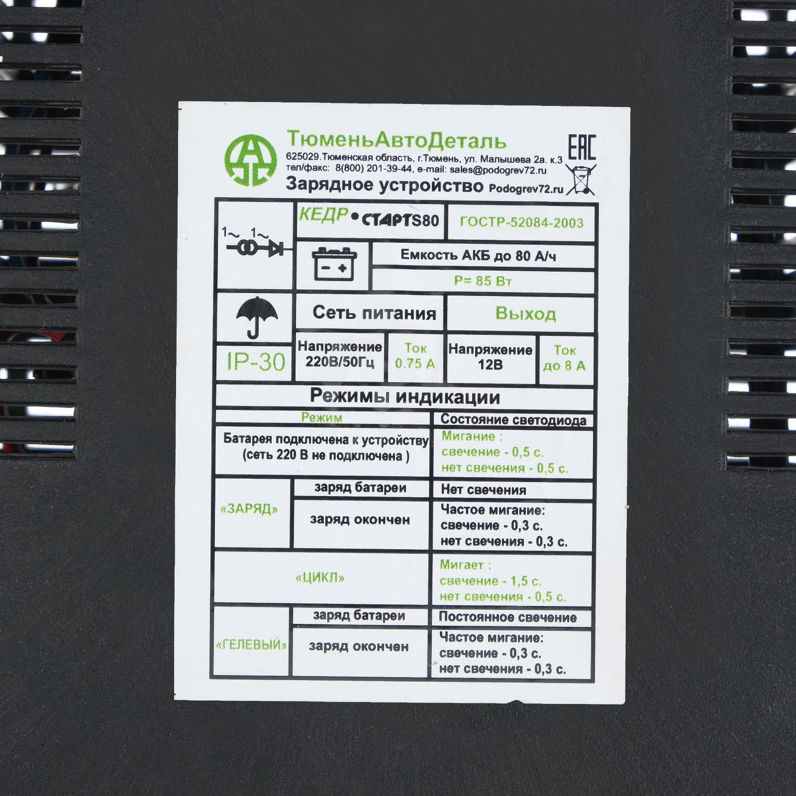 Зарядное устройство для АКБ "Кедр-Старт S80", 8 А,12В, для гелевых и кислотных АКБ
