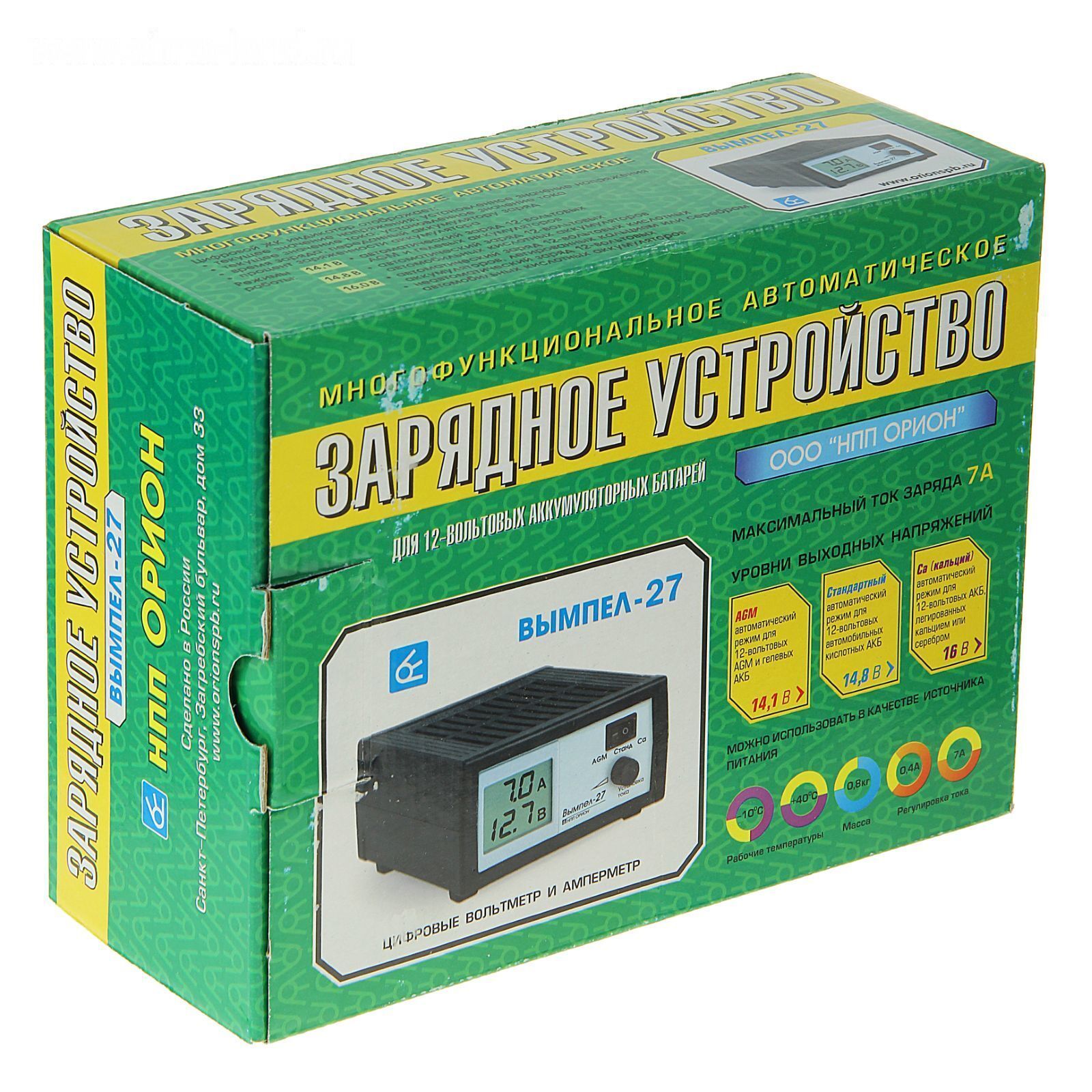 Зарядное устройство АКБ "Вымпел-27", 0.6-7 А, 12 В, для гелевых, кислотных и AGM АКБ
