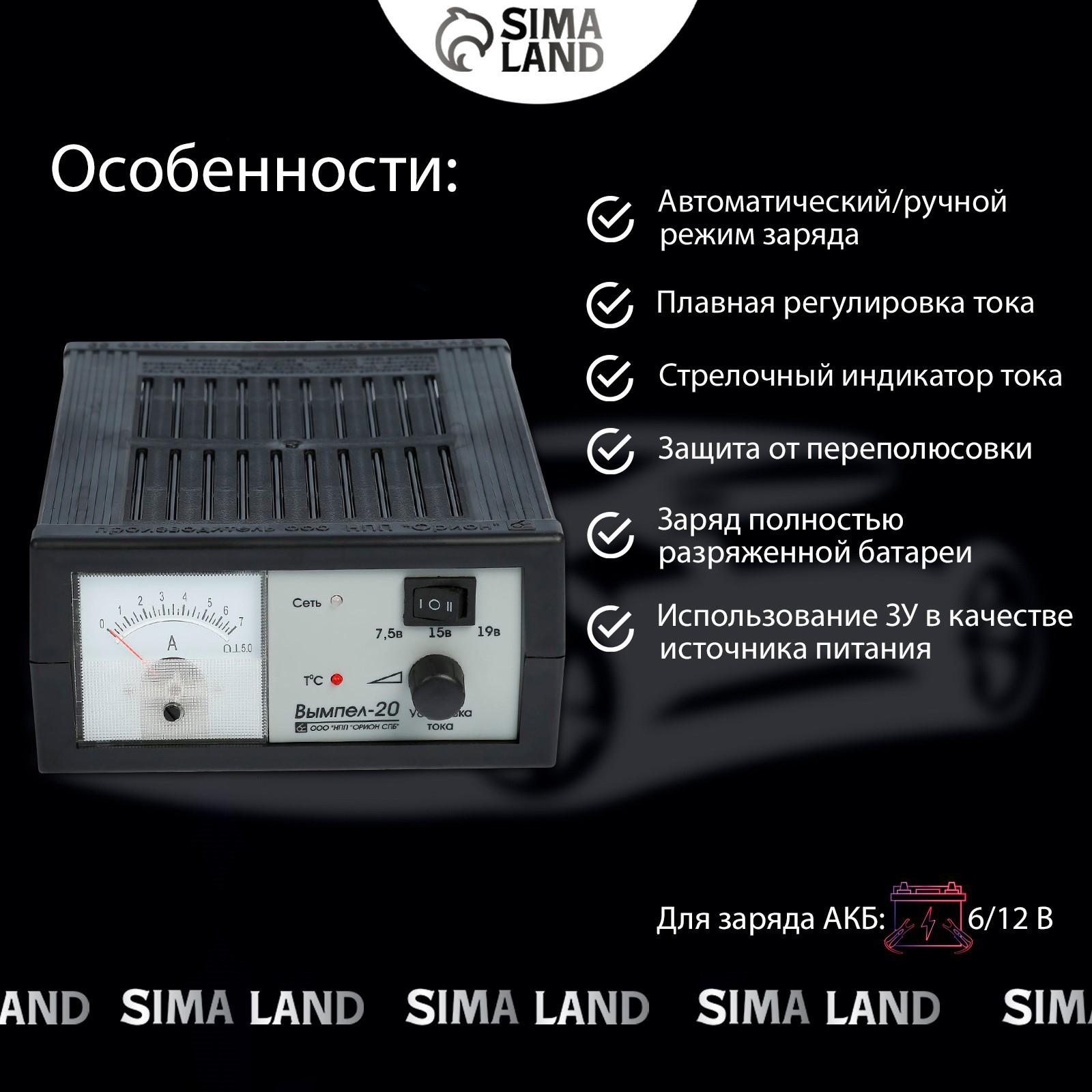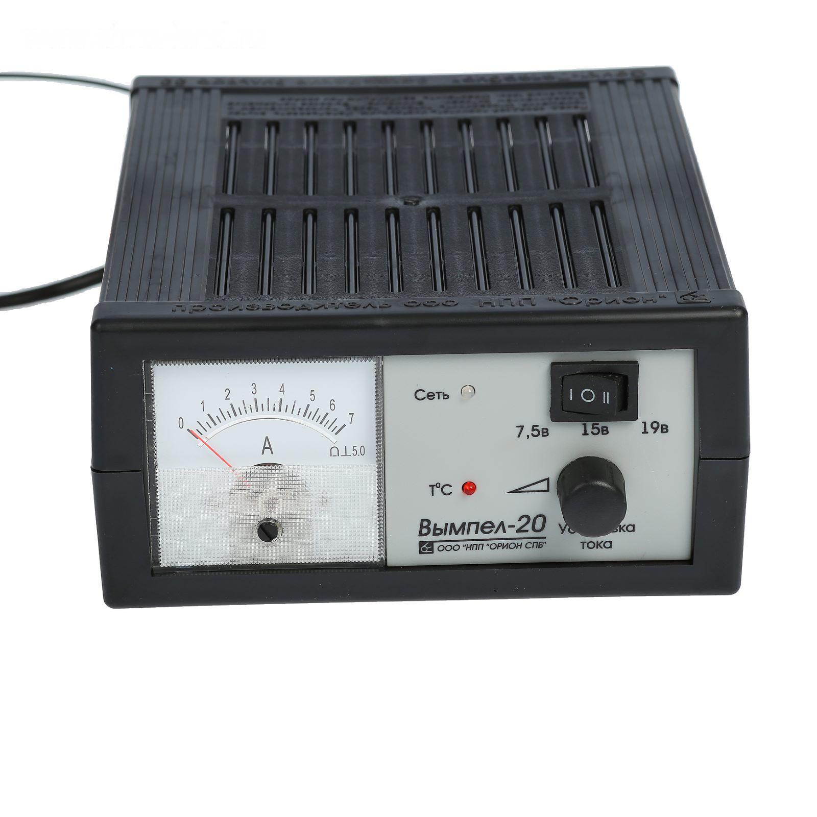 Устройство АКБ "Вымпел-20" отлично справляется с поставленными задачами. Подходит для заряда 6 и 12 В автомобильных и мотоциклетных аккумуляторных батарей любого типа и ёмкости. Ток автоматически уменьшается в конце работы, что делает данную модель особенно безопасной в использовании. Также осуществляет заряд полностью разряженной АКБ. Зарядное устройство АКБ «Вымпел» 20 не подведёт вас в критической ситуации!