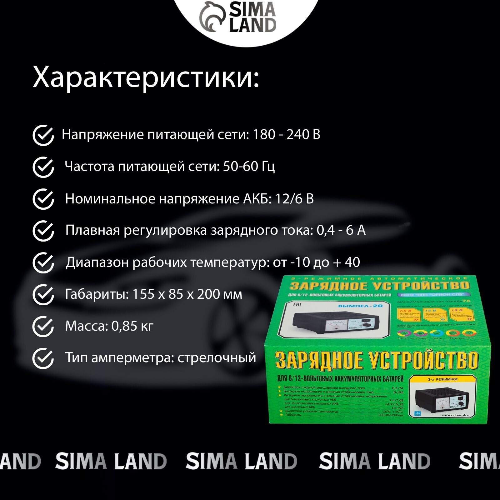 Зарядное устройство АКБ "Вымпел-20", 0.6-7 А, 6/12 В