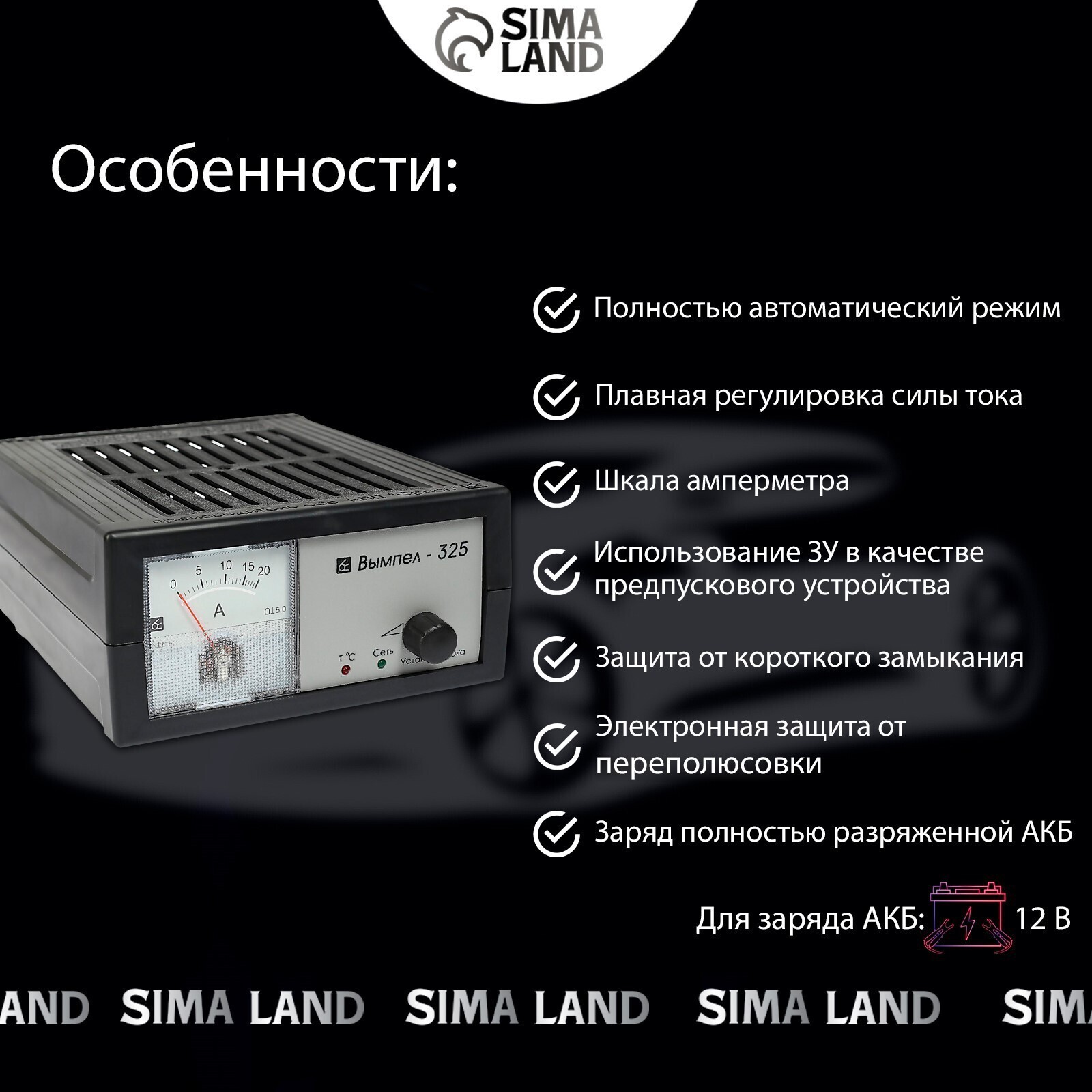 Зарядно-предпусковое устройство АКБ Вымпел-325, 0,8 - 20 А, 12 В, до 240 Ач