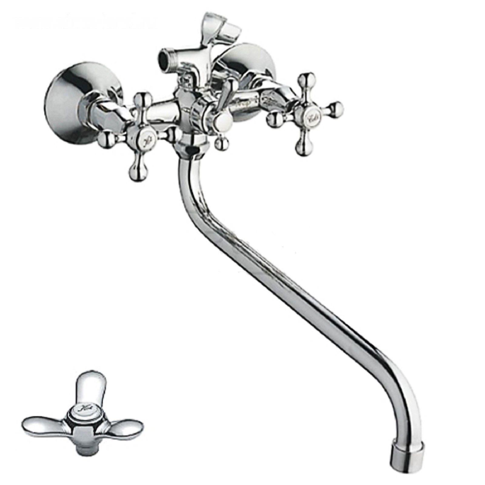 Cмеситель для ванны Cron CN2212, двухвентильный, длинный излив, шаровый переключатель, хром