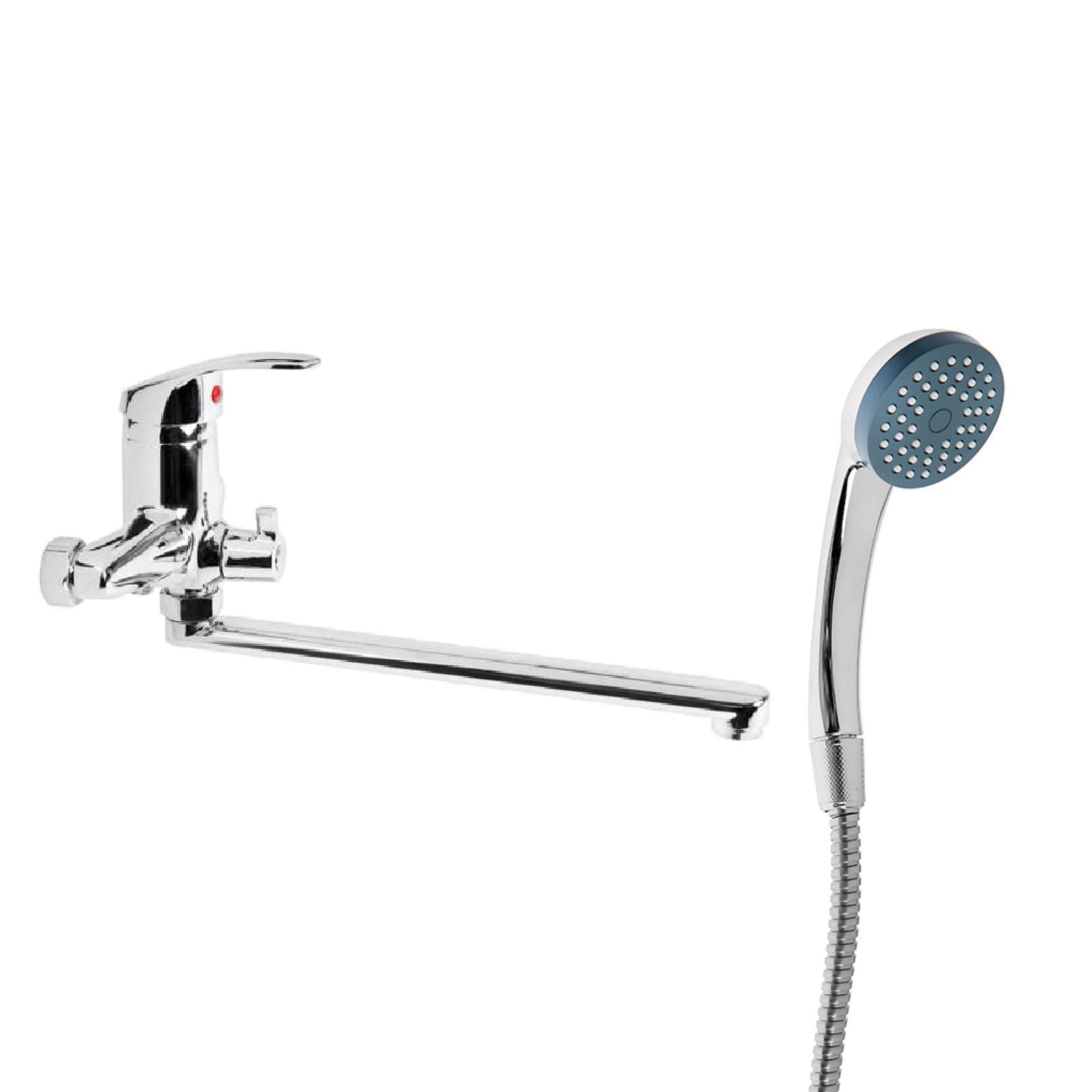 Cмеситель для ванны "Эверест" B22-022, прямой плоский излив, с душевом набором, хром