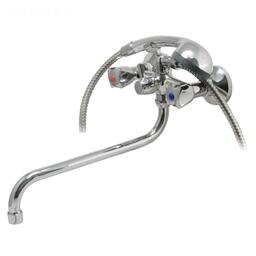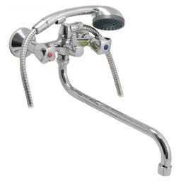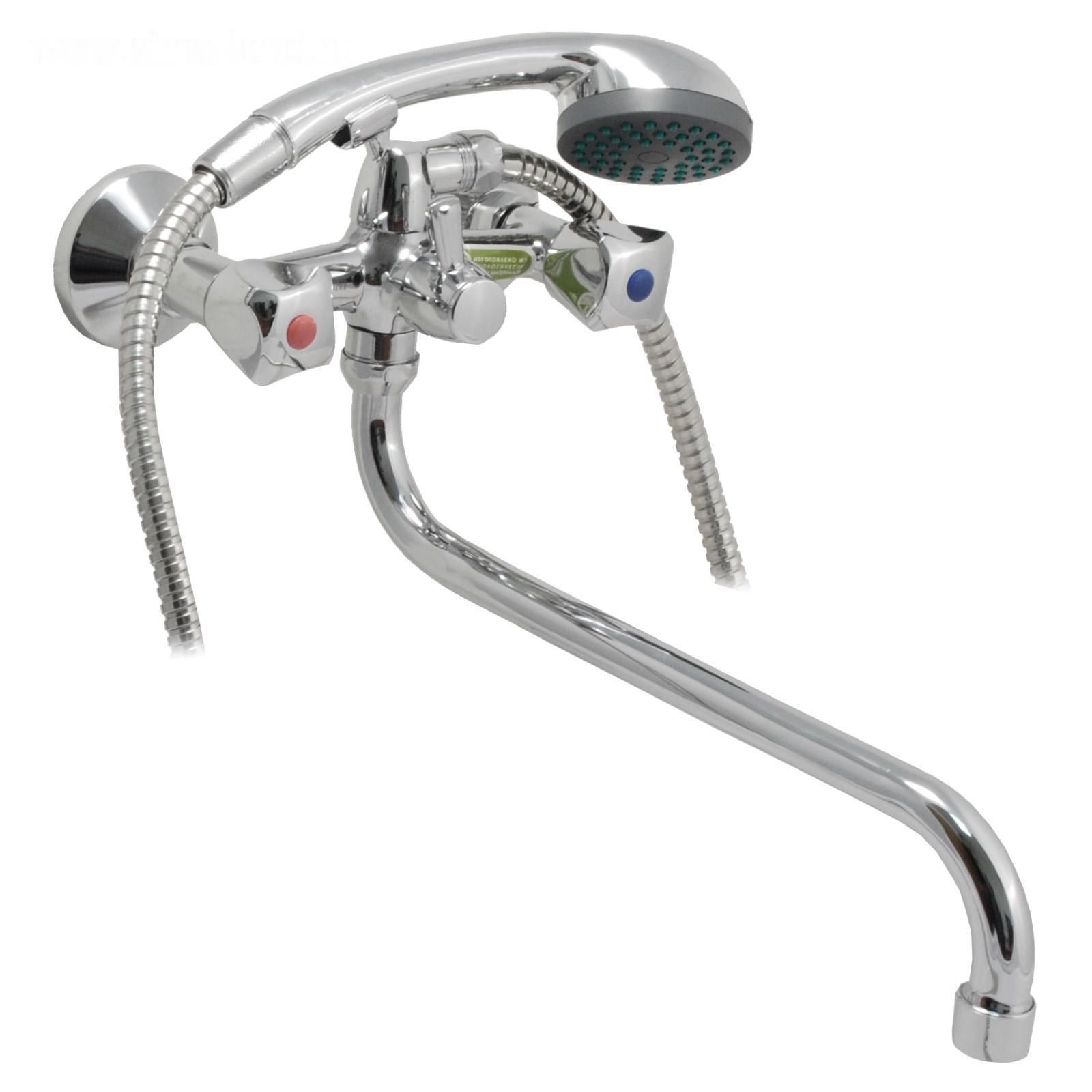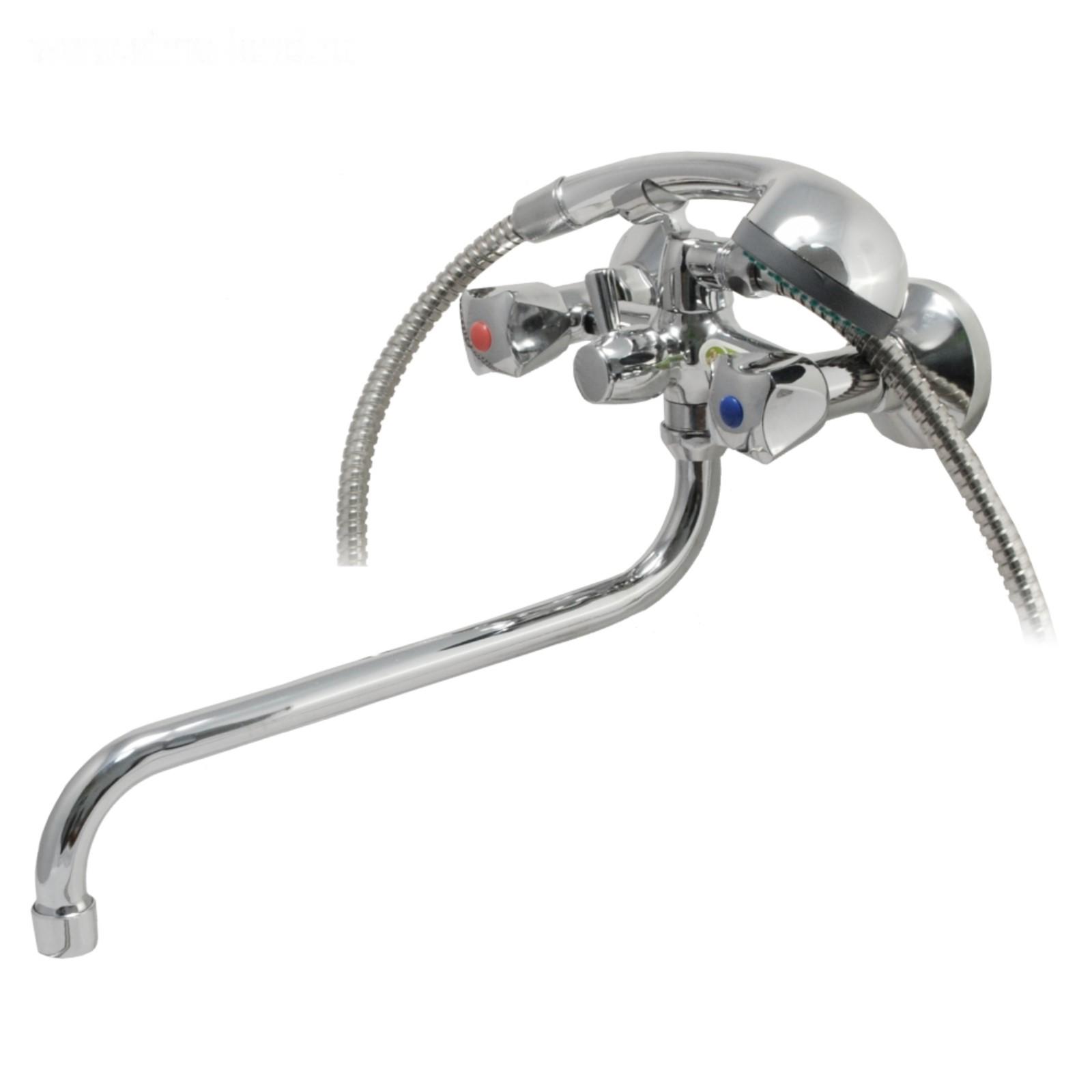 Смеситель ванно-душевой двуручный Juguni JGN0130, с металлическим шлангом, хром.лейкой, кран-букса резина, хром.маховик, излив 320 мм