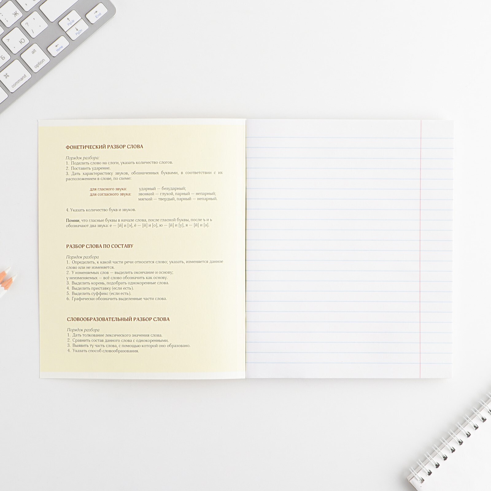 Предметная тетрадь, 48 листов, «УВЕДОМЛЕНИЯ», со справ. мат. «Русский язык», обложка мелованный картон 230 гр., внутренний блок в линейку 80 гр., белизна 96%