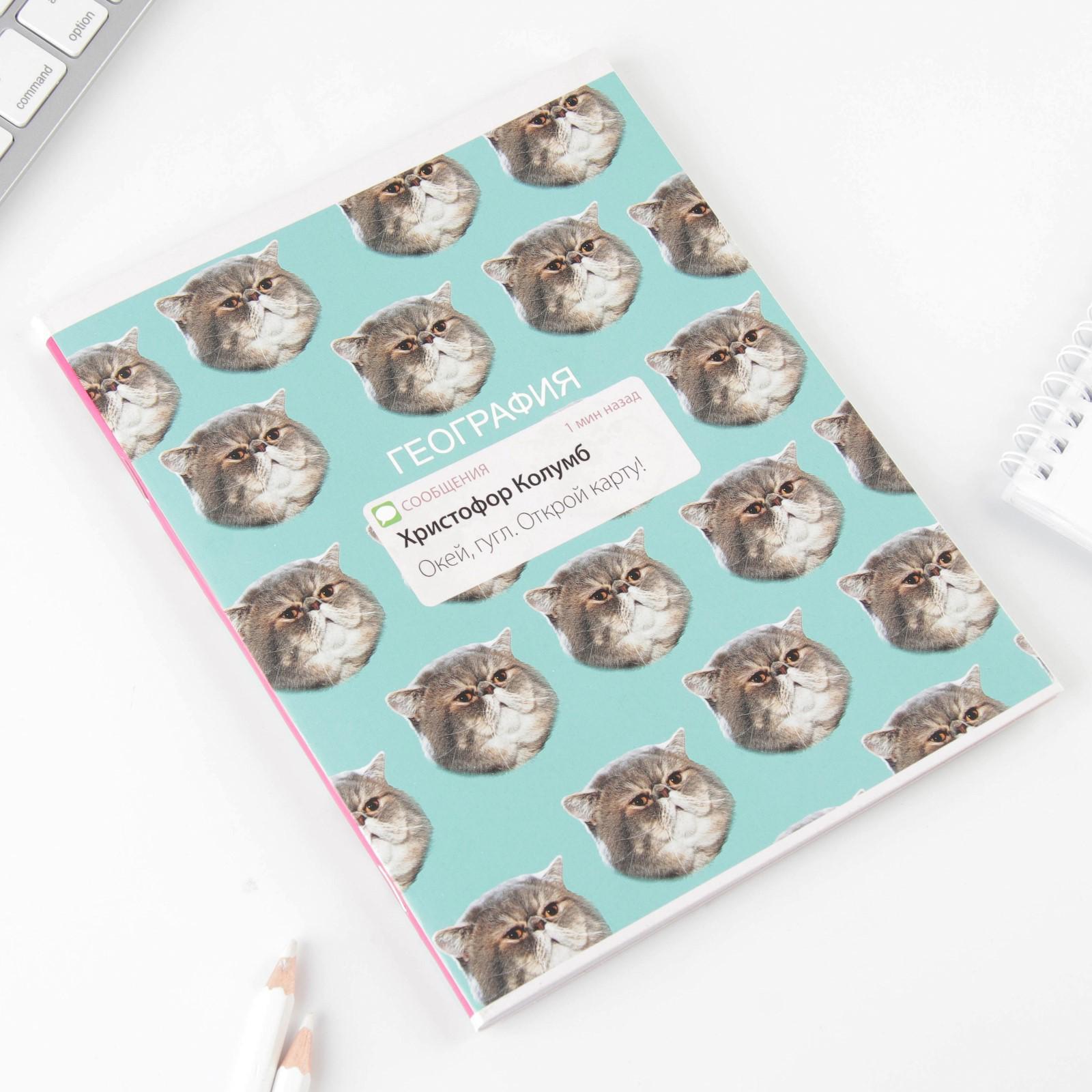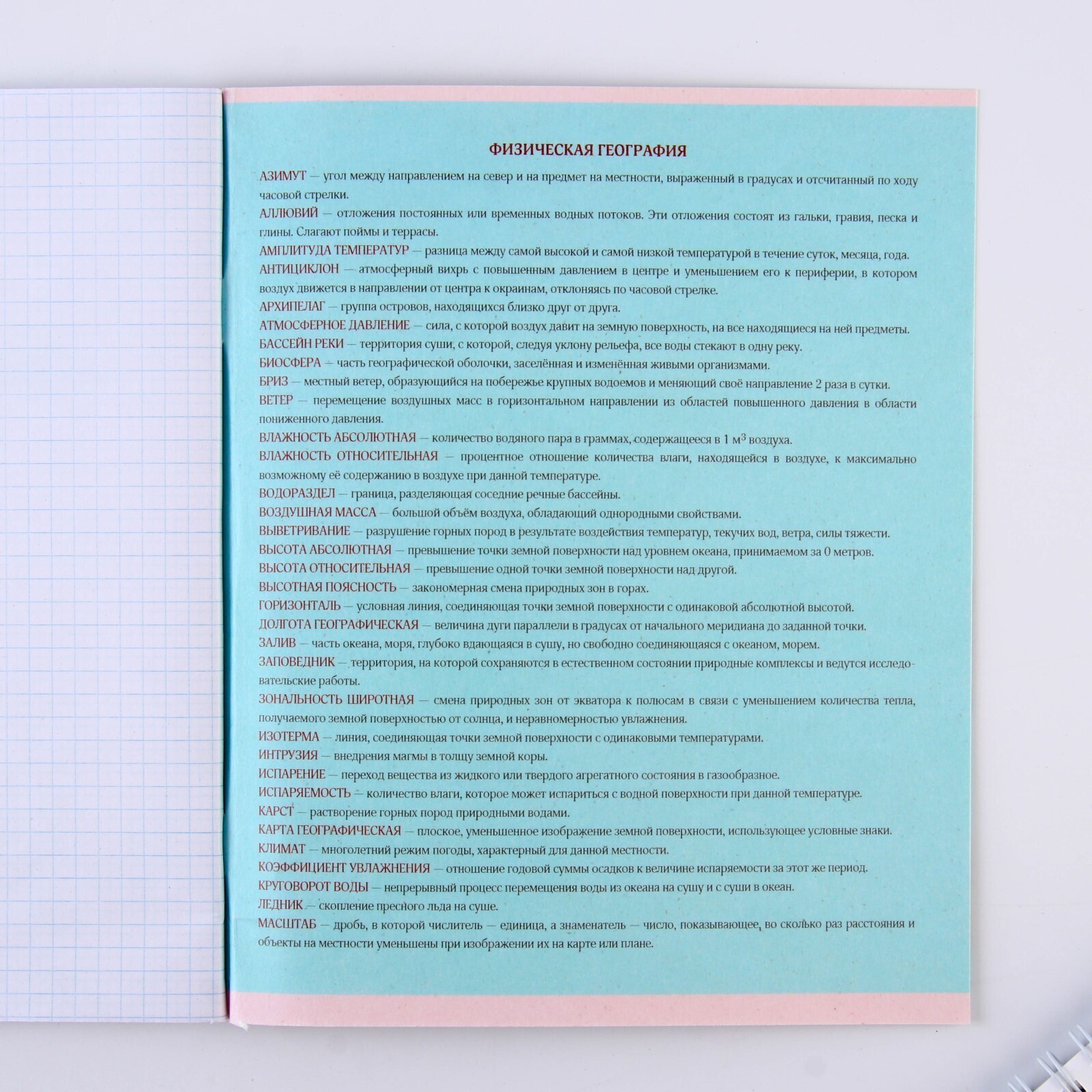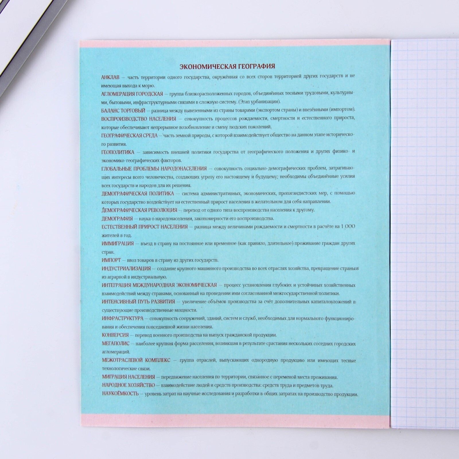 Предметная тетрадь, 48 листов, «УВЕДОМЛЕНИЯ», со справ. мат. «География», обложка мелованный картон 230 гр., внутренний блок в клетку 80 гр., белизна 96%