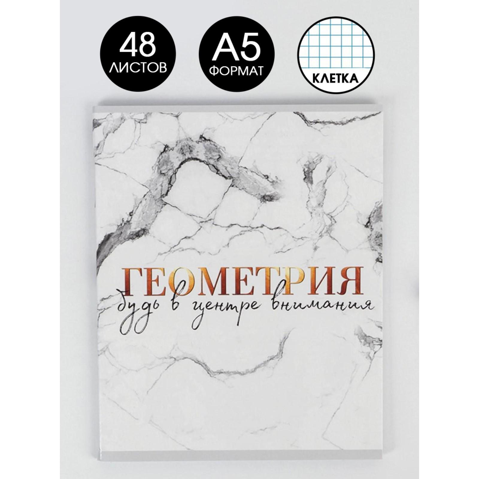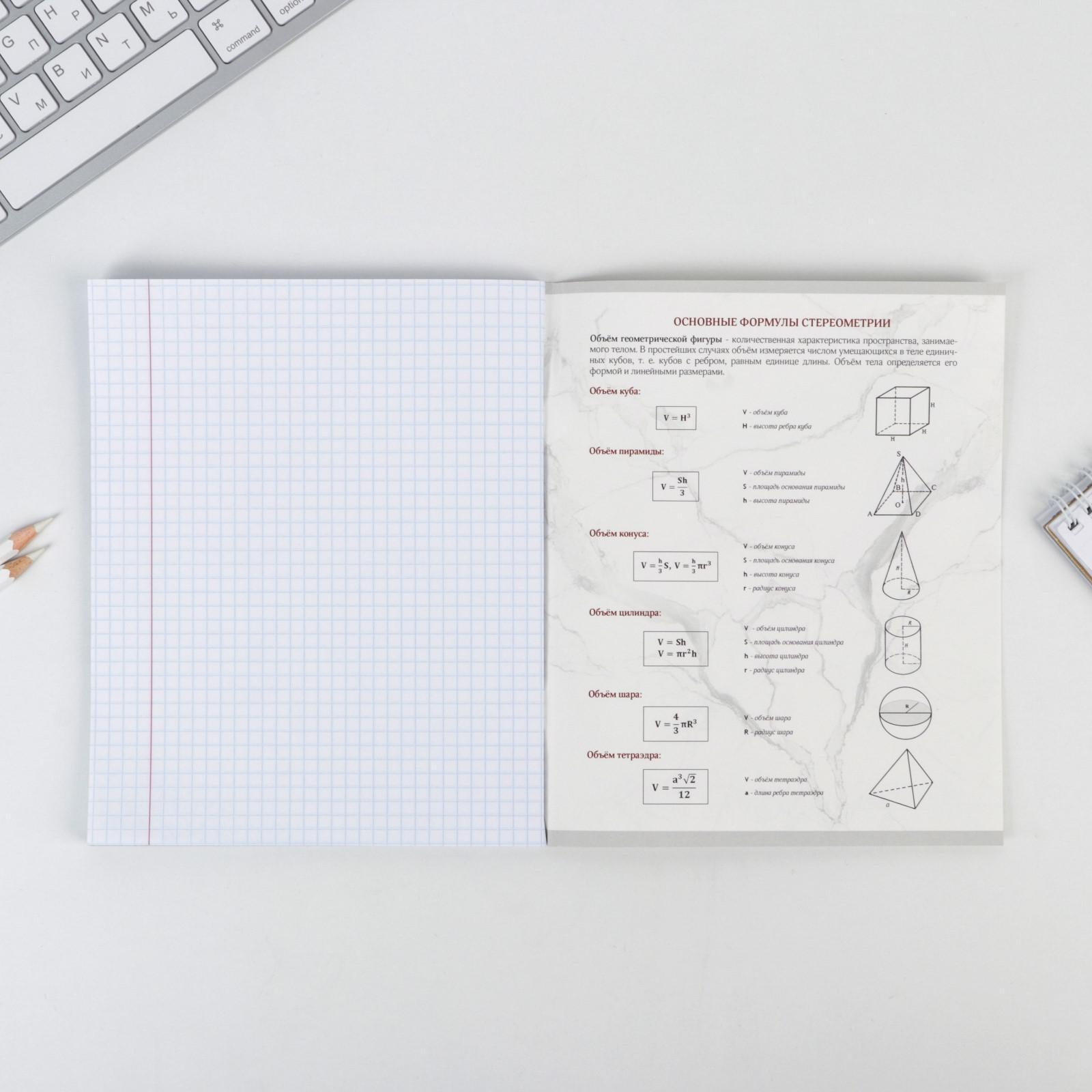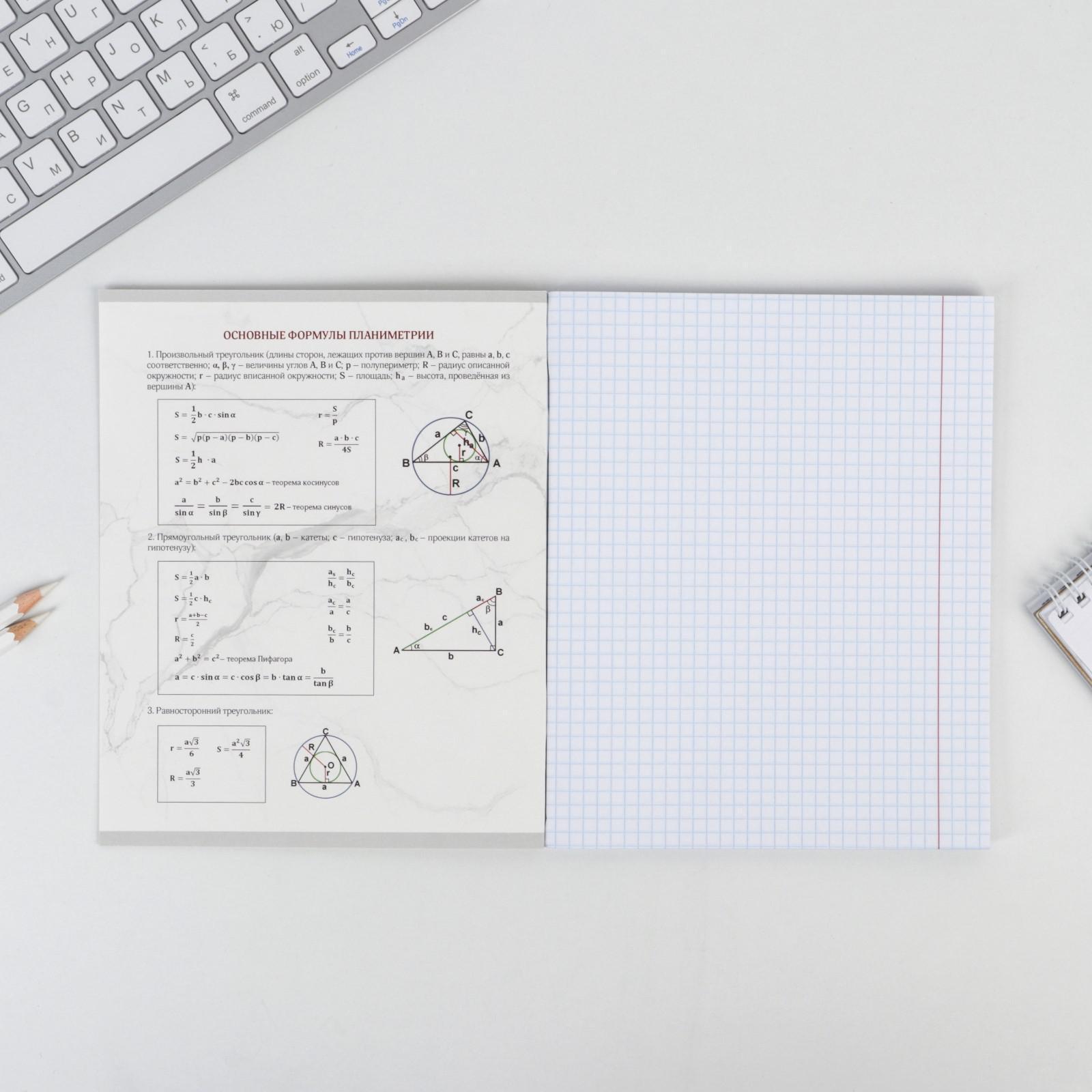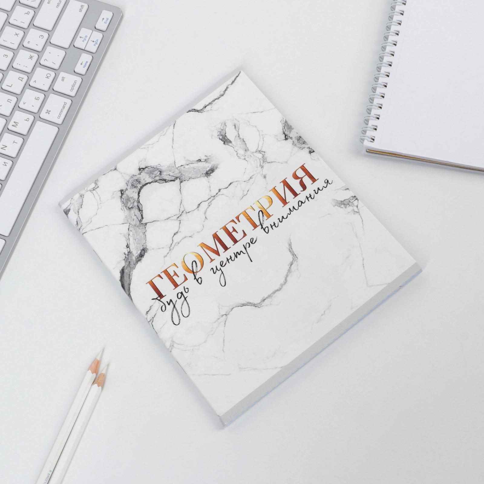 Предметная тетрадь, 48 листов, «МРАМОР», со справ. мат. «Геометрия», обложка мелованный картон 230 гр., внутренний блок в клетку 80 гр., белизна 96%