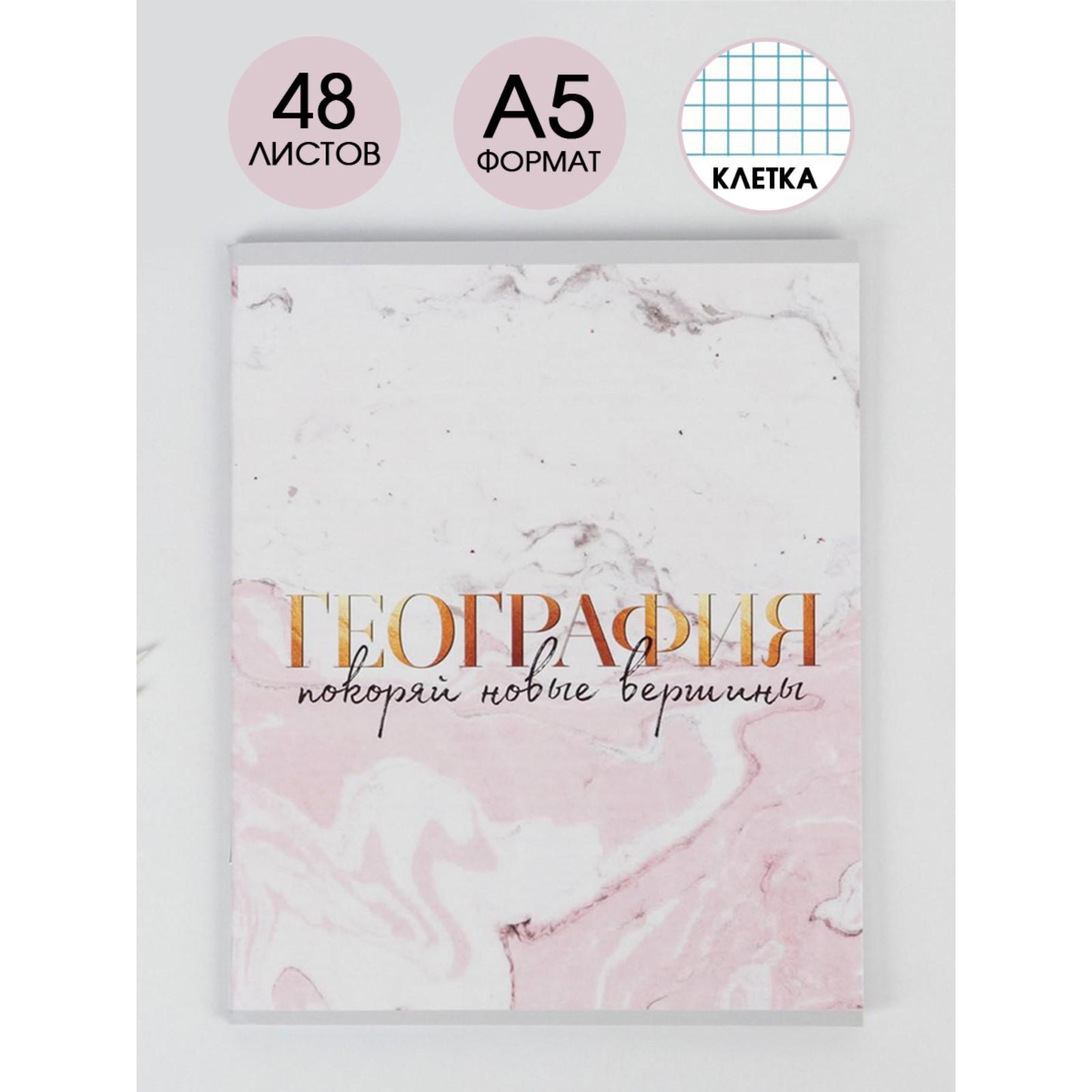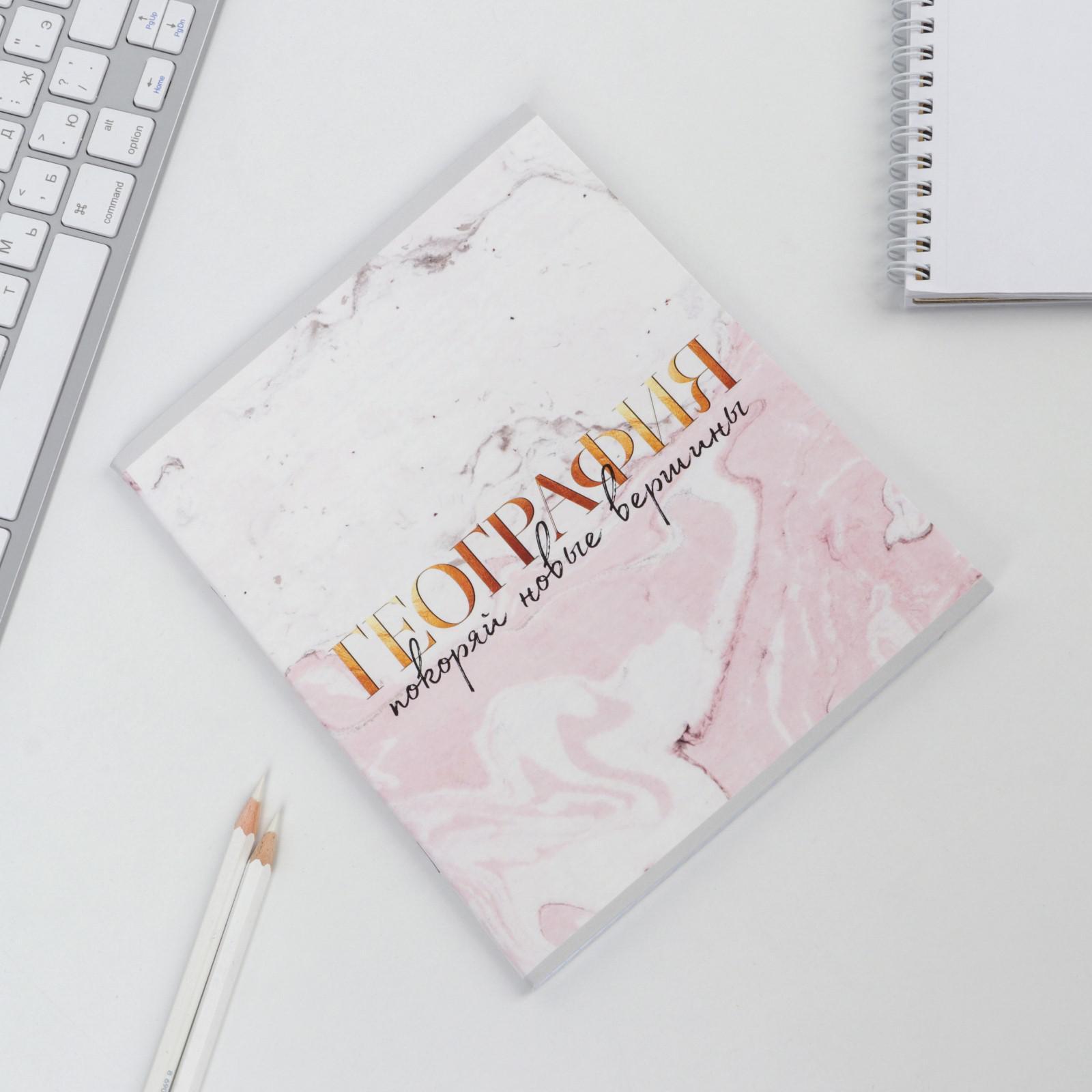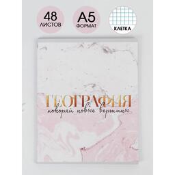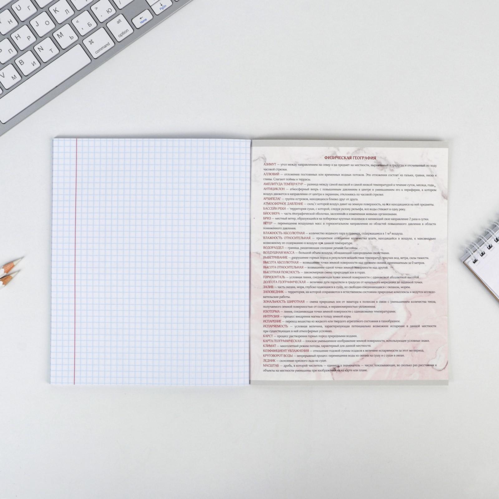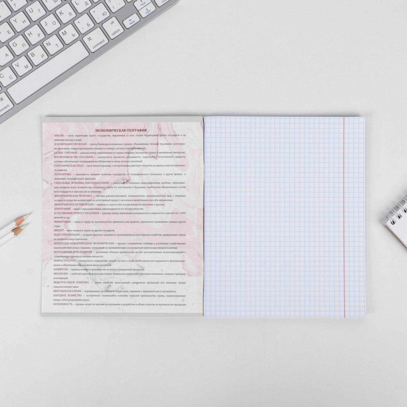 Предметная тетрадь, 48 листов, «МРАМОР», со справ. мат. «География», обложка мелованный картон 230 гр., внутренний блок в клетку 80 гр., белизна 96%