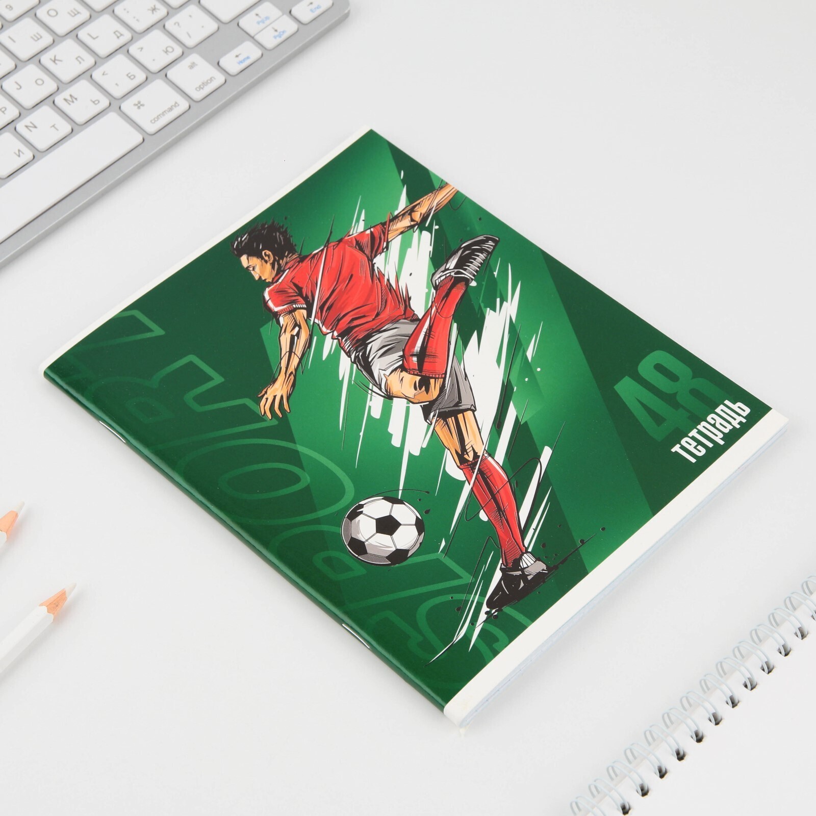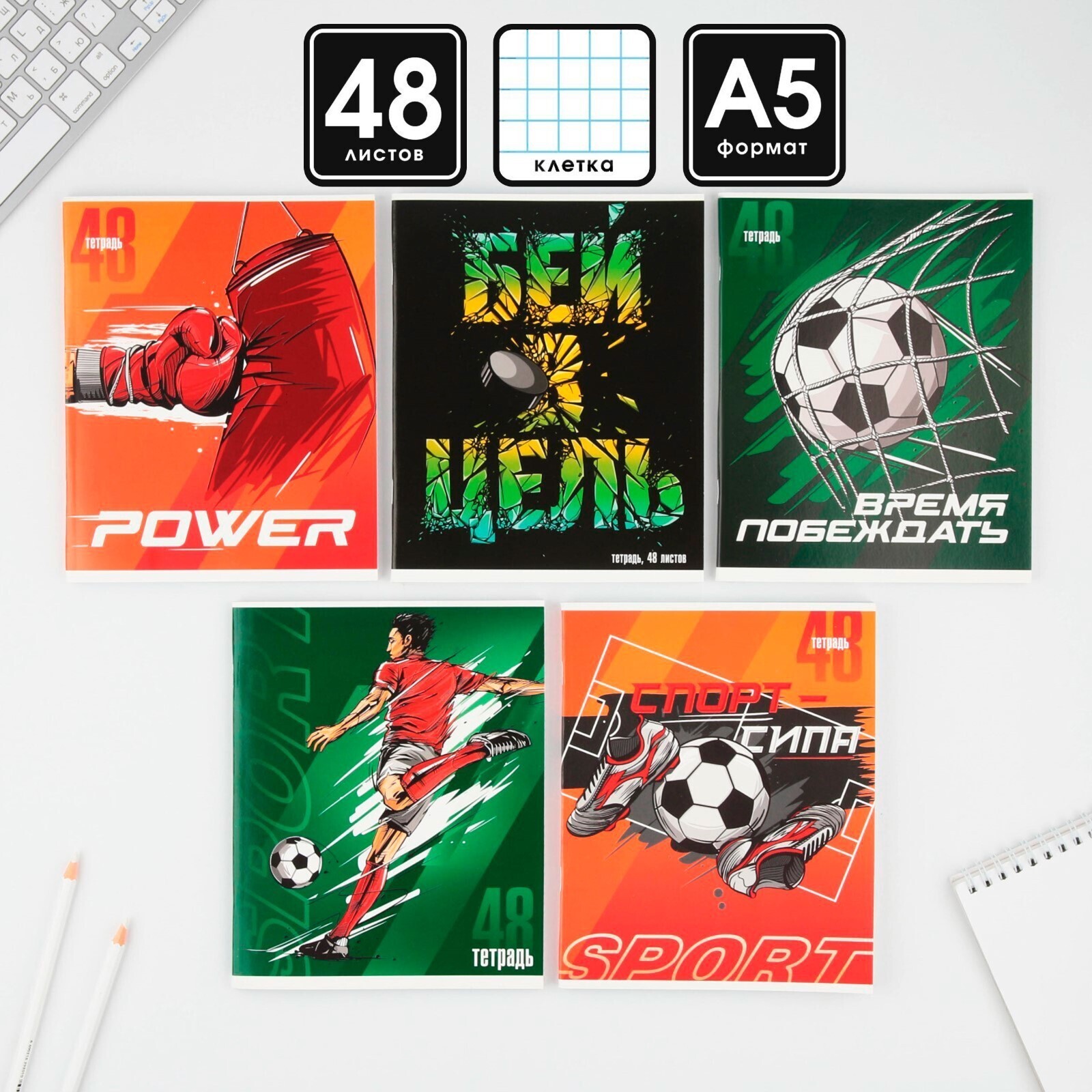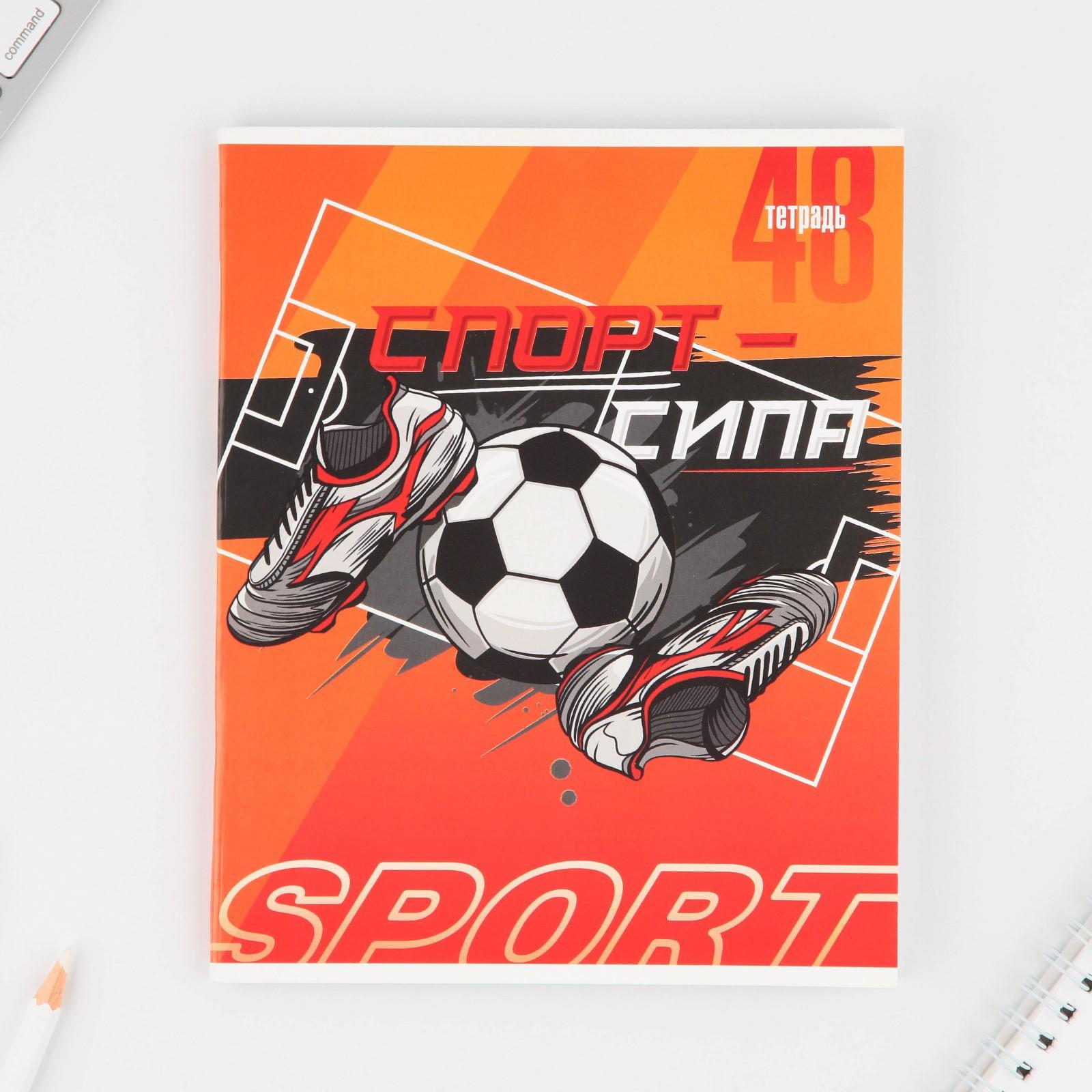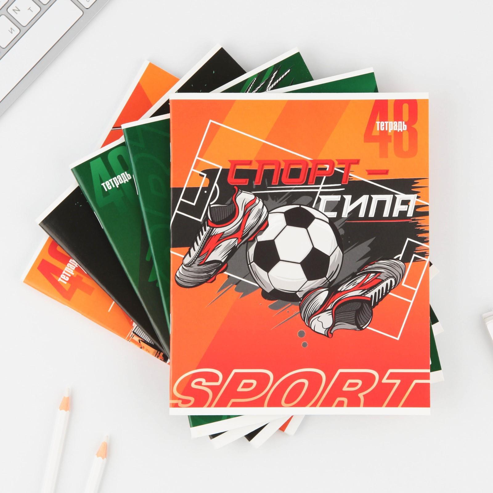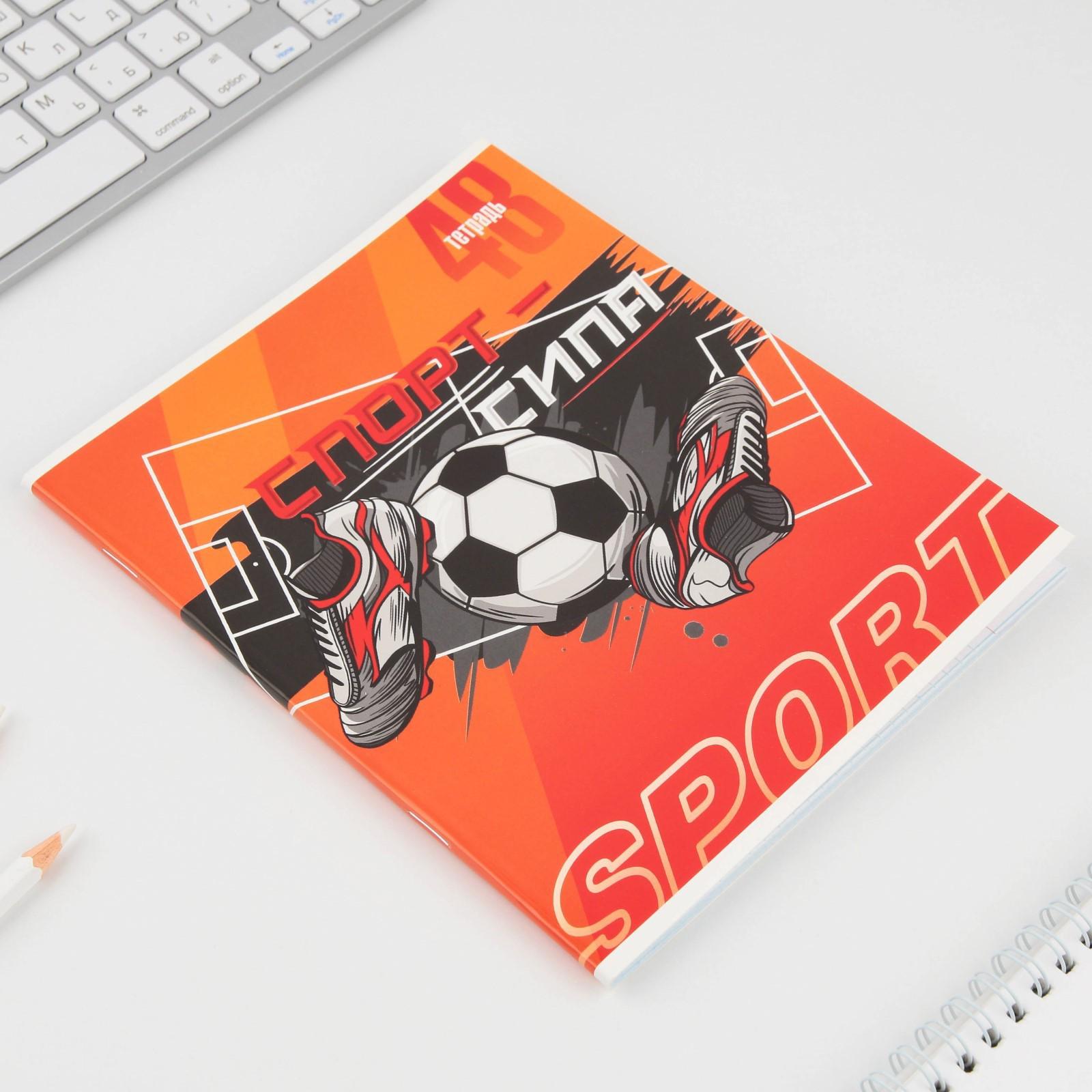 Тетрадь А5, 48 л на скрепке МИКС «Спорт», обложка мелованный картон 230 гр., внутренний блок в клетку 80 гр., белизна 96%