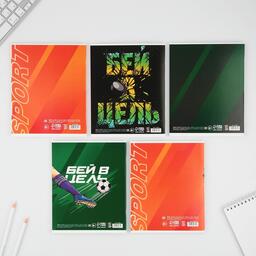 Тетрадь МИКС из 5 тетрадей с разным дизайном «Спорт» в клетку . Формат А5 . Вид крепления – скрепка. Внутренний блок в клетку . Обложка выполнена из мелованного картона. Тетради со смешным дизайном идеально подойдут для школьников любого года обучения.