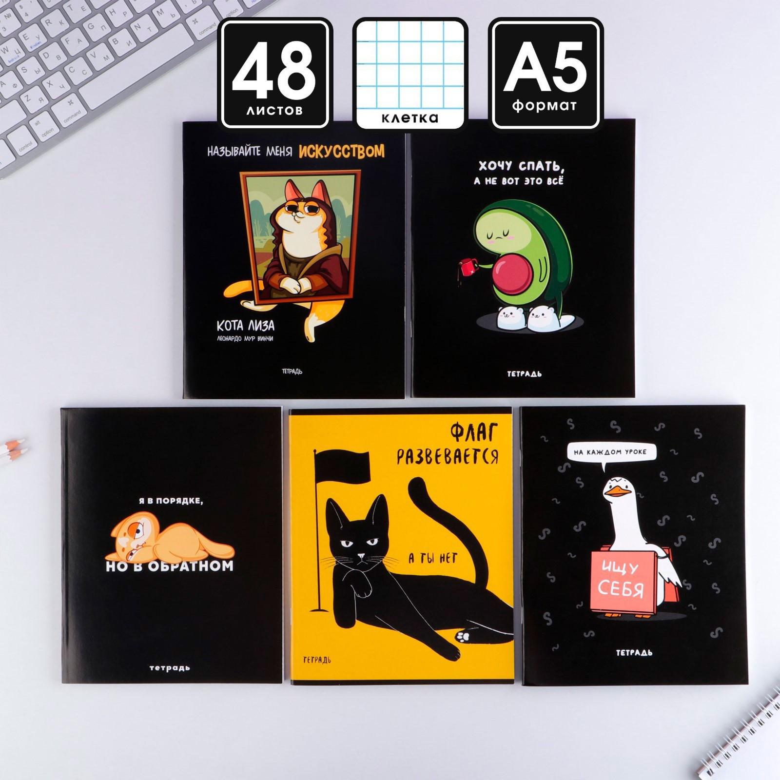 Тетрадь А5, 48 л на скрепке МИКС «Персонажи приколы», обложка мелованный картон 230 гр., внутренний блок в клетку 80 гр., белизна 96%