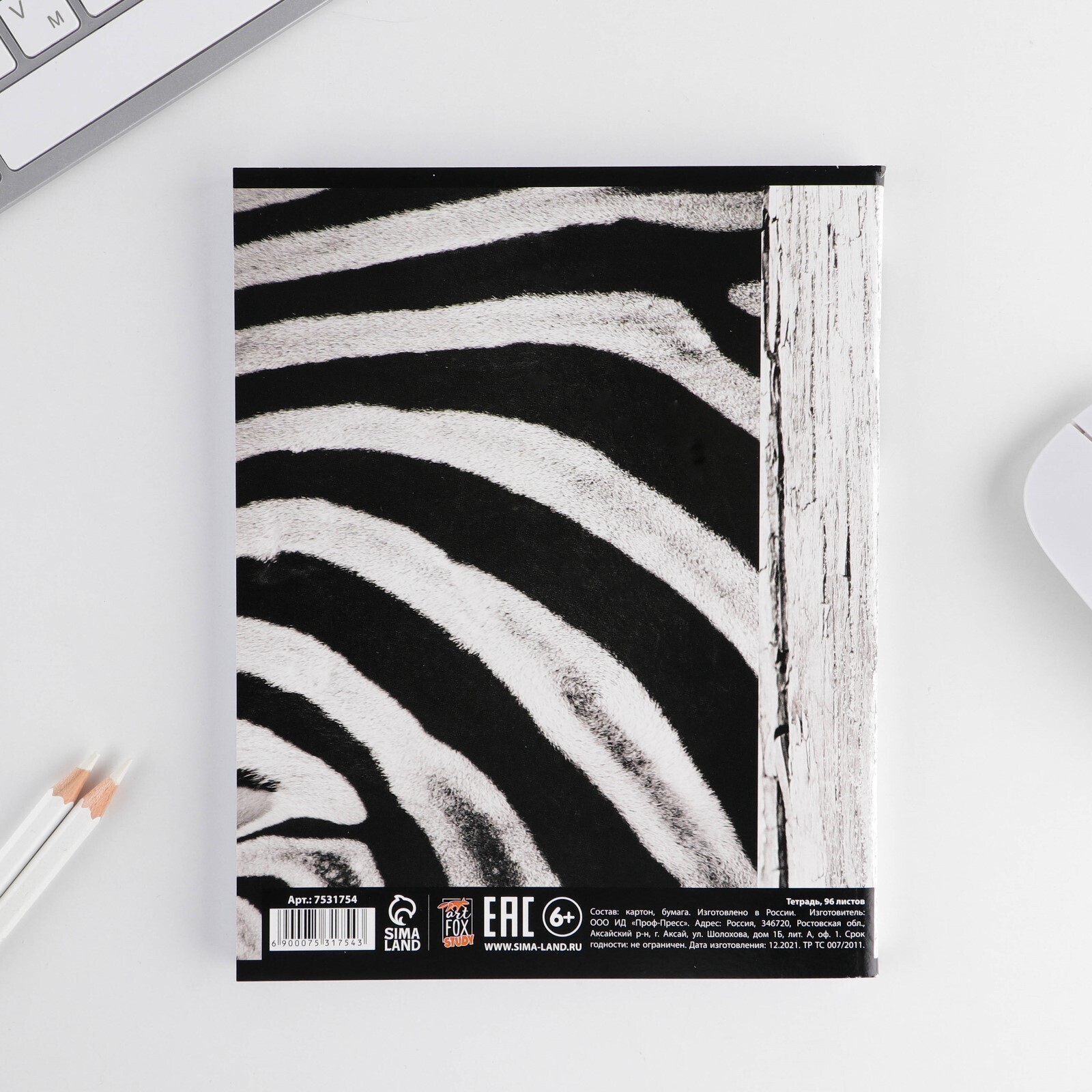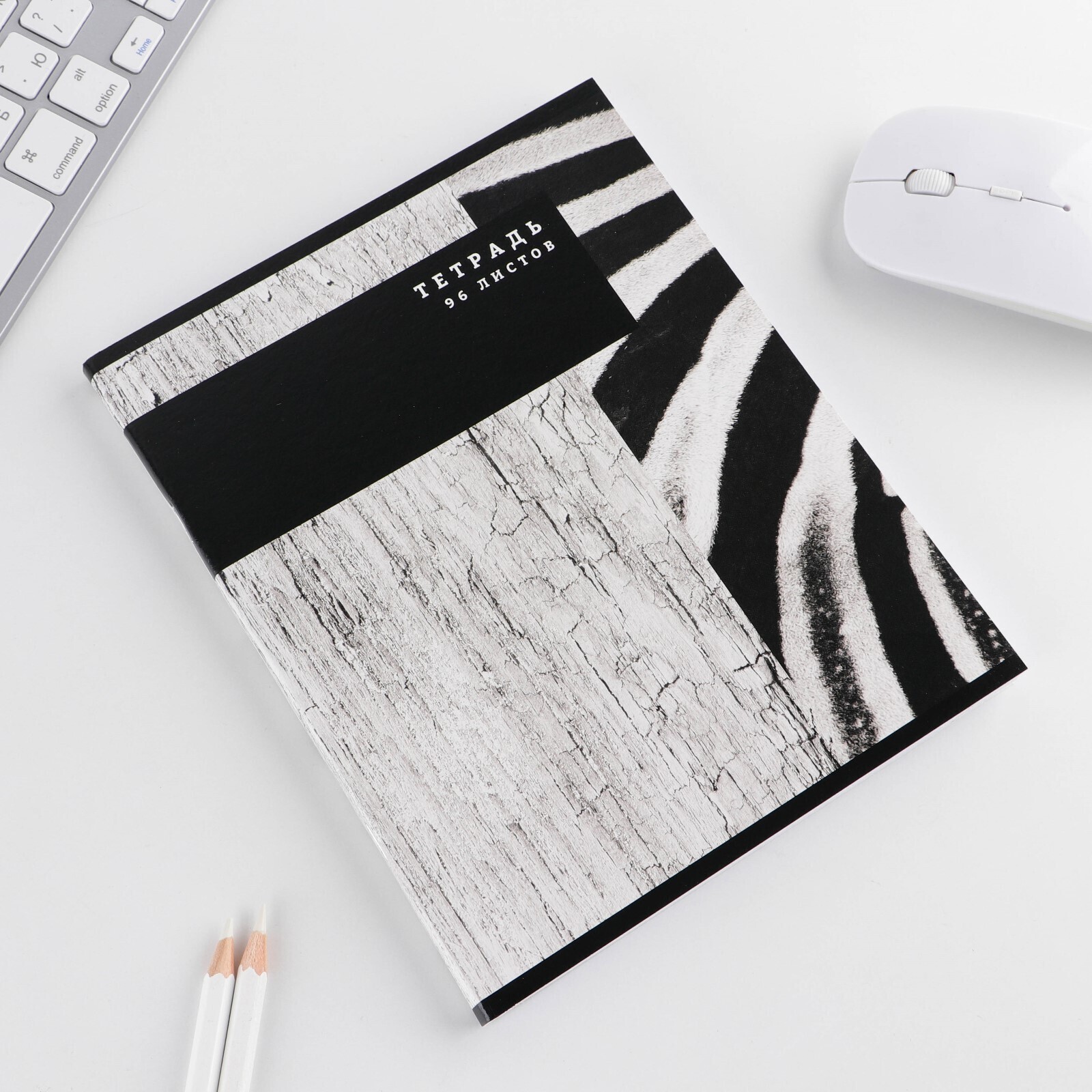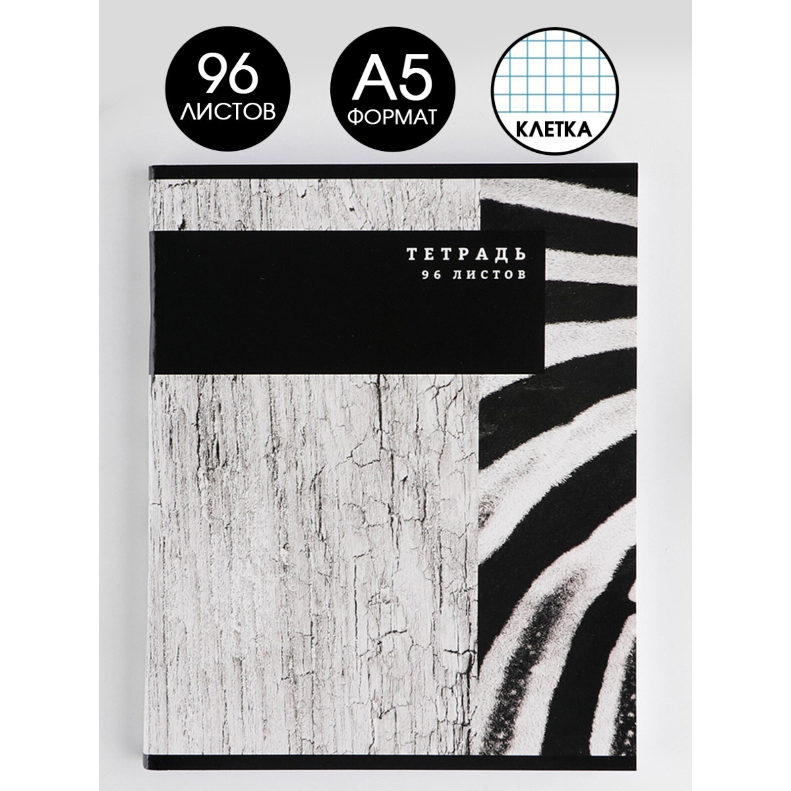 Тетрадь А5, 96 листов на скрепке, «Фактура зебра», обложка мелованный картон 230 гр., внутренний блок в клетку 60 гр., белизна 96%
