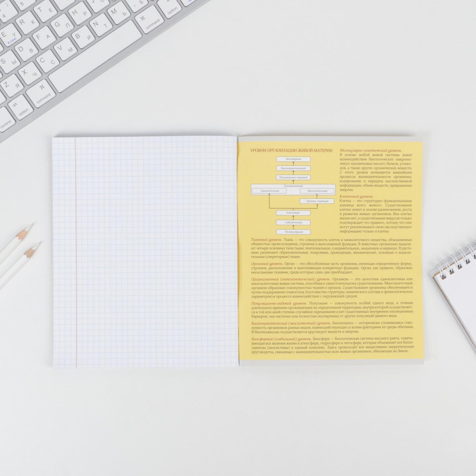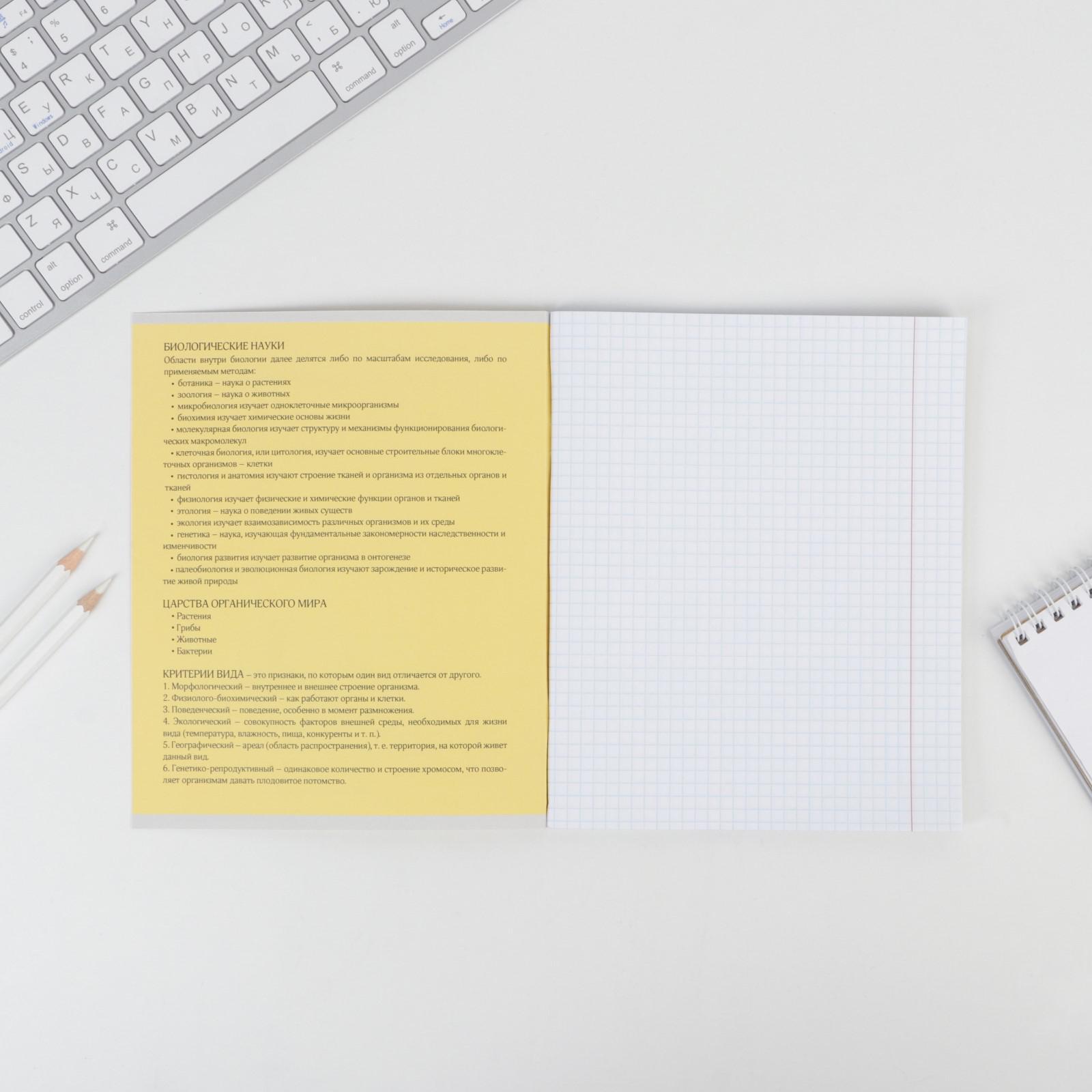 Предметная тетрадь, 48 листов, «ПЕРСОНАЖИ», со справочными материалами «Биология», обложка мелованный картон 230 гр., внутренний блок в клетку 80 гр., белизна 96%