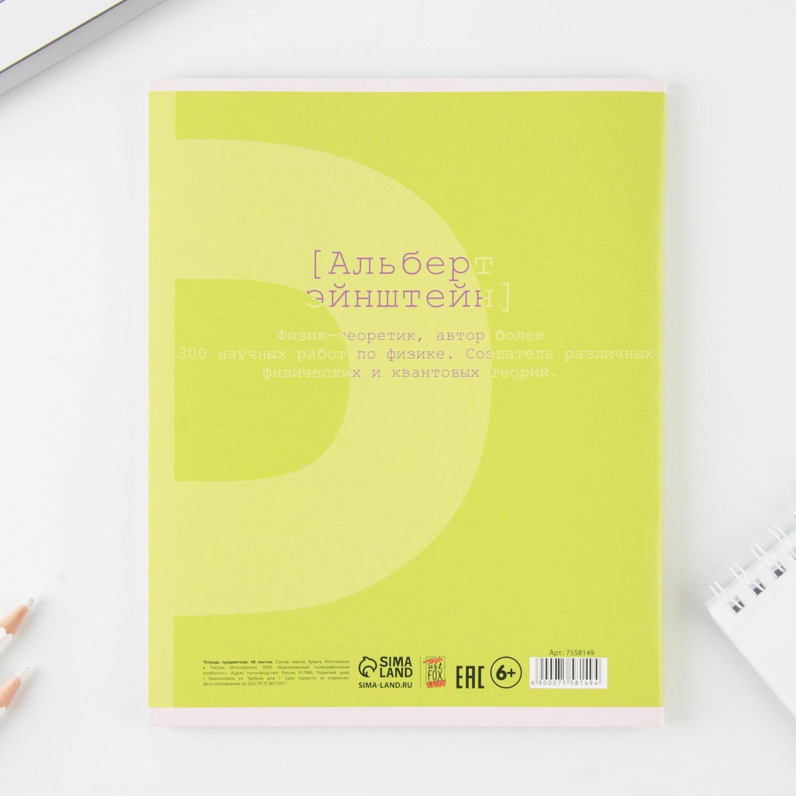 Предметная тетрадь, 48 листов, «ВЕЛИКИЕ ЛИЧНОСТИ», со справ. мат. «Физика», обложка мелованный картон 230 гр., внутренний блок в клетку 80 гр., белизна 96%