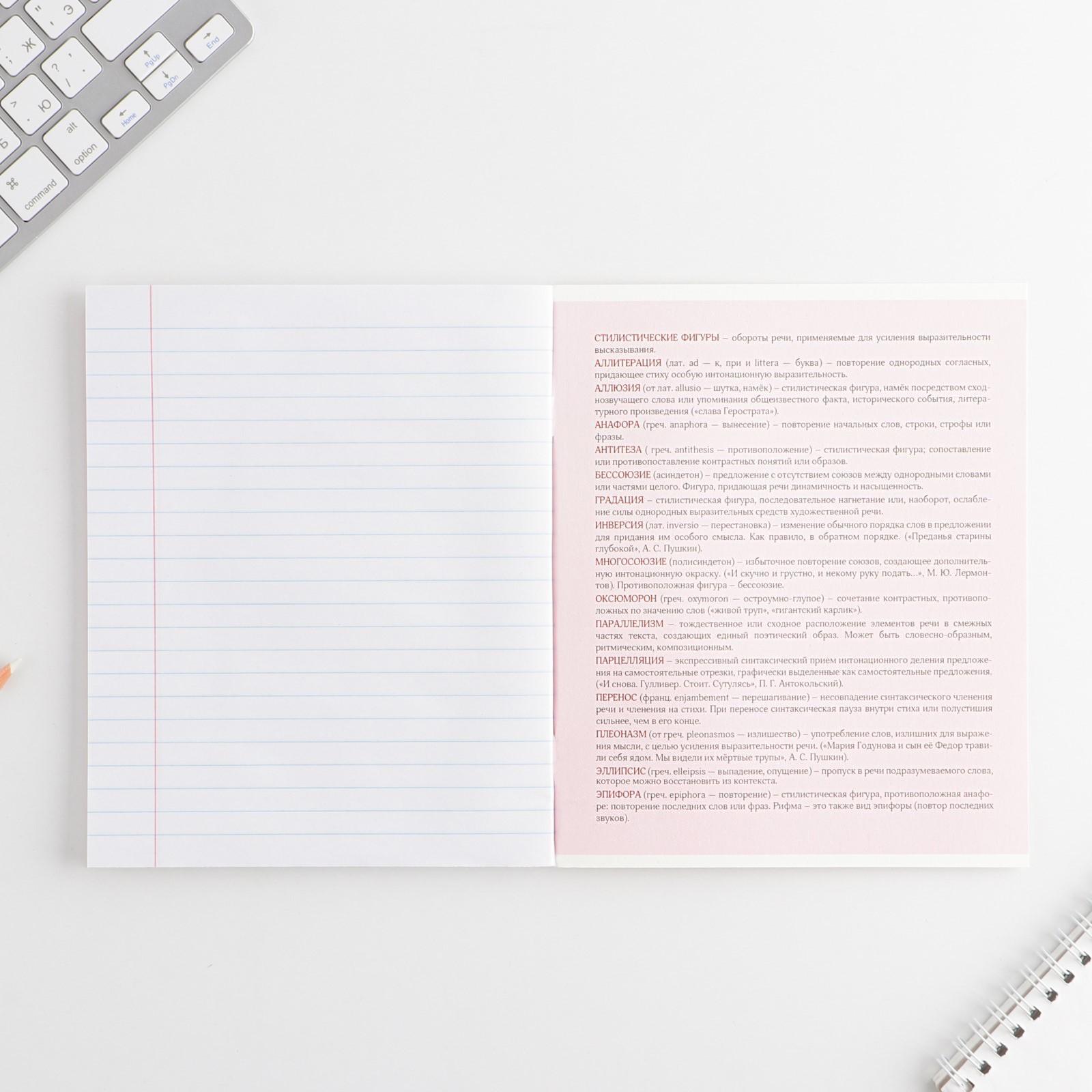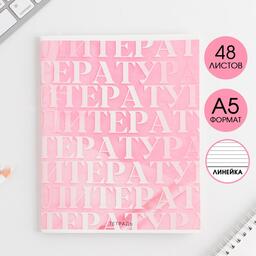 Предметная тетрадь, 48 листов, «РОЗОВАЯ СЕРИЯ», со справ. мат. «Литература», обложка мелованный картон 230 гр., внутренний блок в линейку 80 гр., белизна 96%