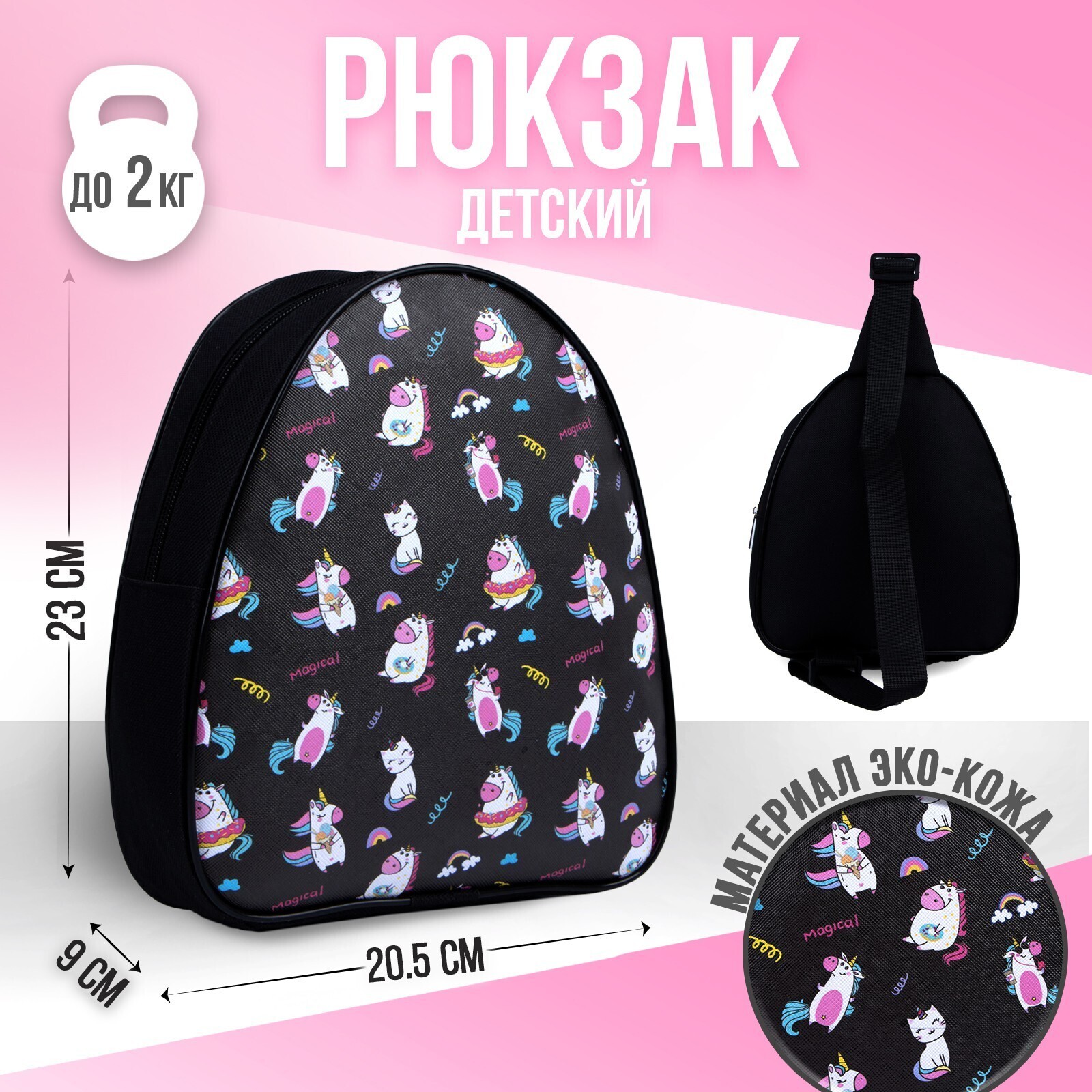Рюкзак детский через плечо, отдел на молнии, цвет чёрный, «Единорог»