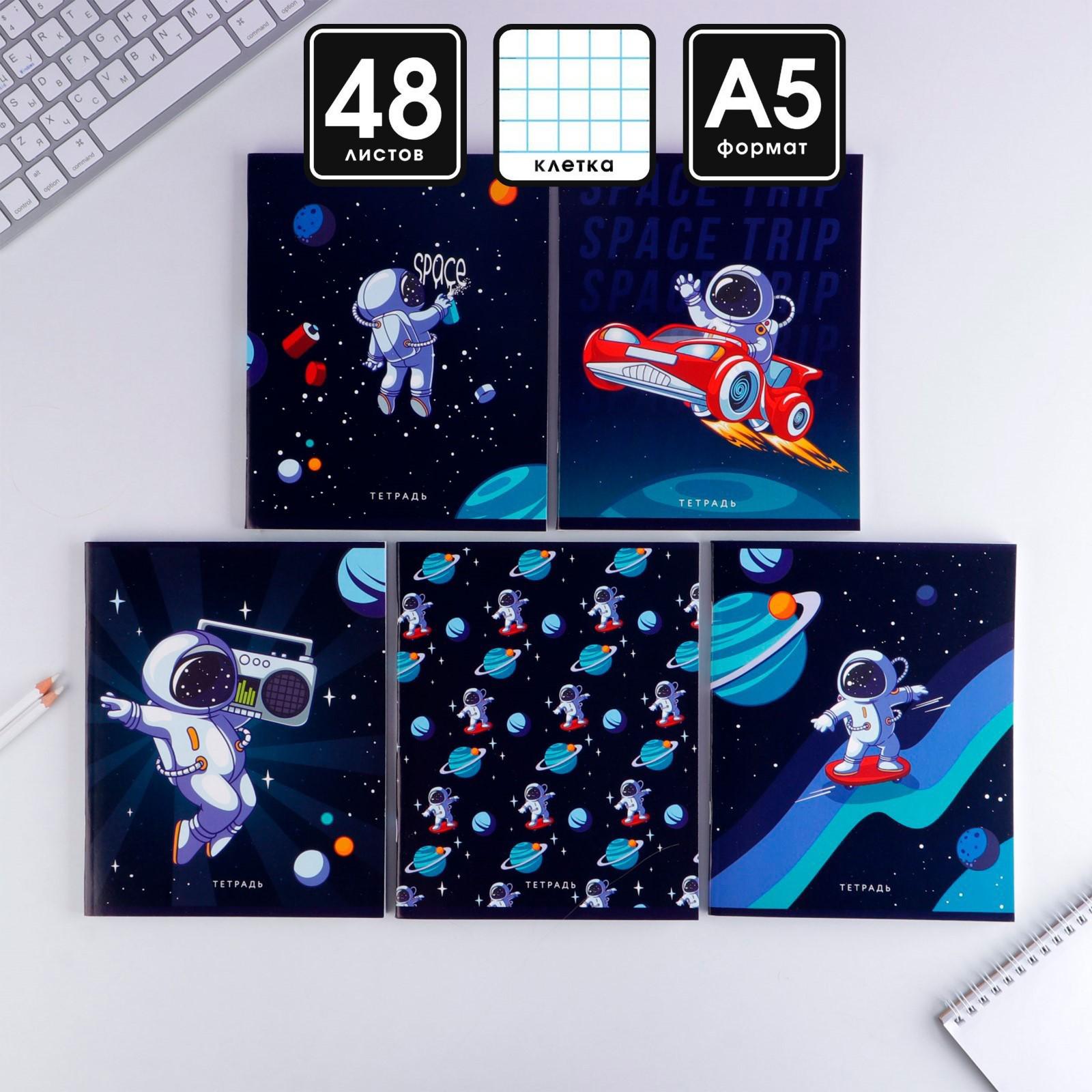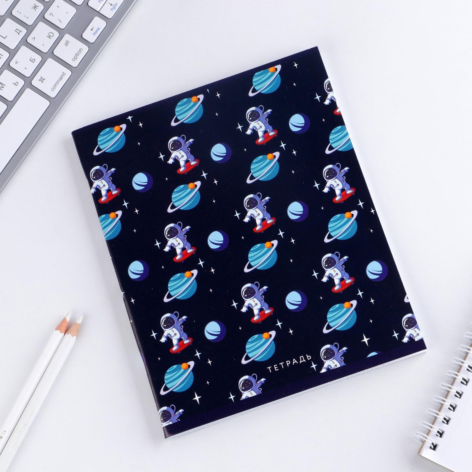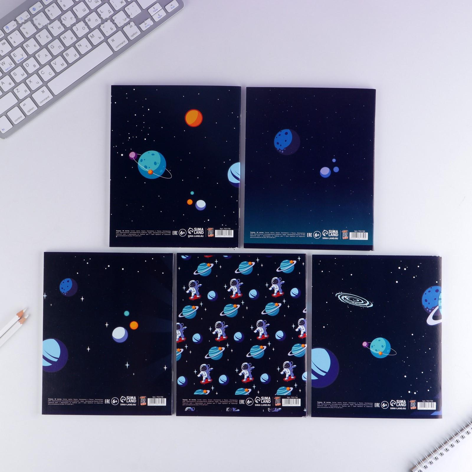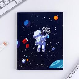 Тетрадь А5, 48 л на скрепке МИКС «Космический», обложка мелованный картон 230 гр., внутренний блок в клетку 80 гр., белизна 96%