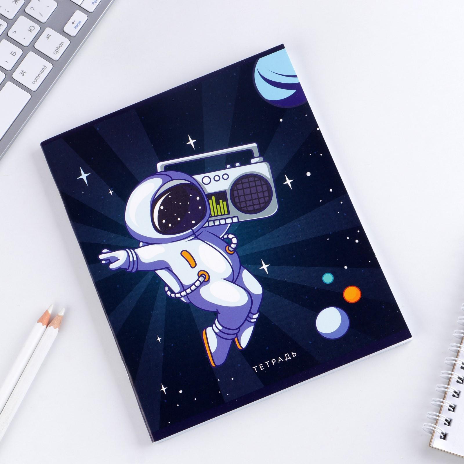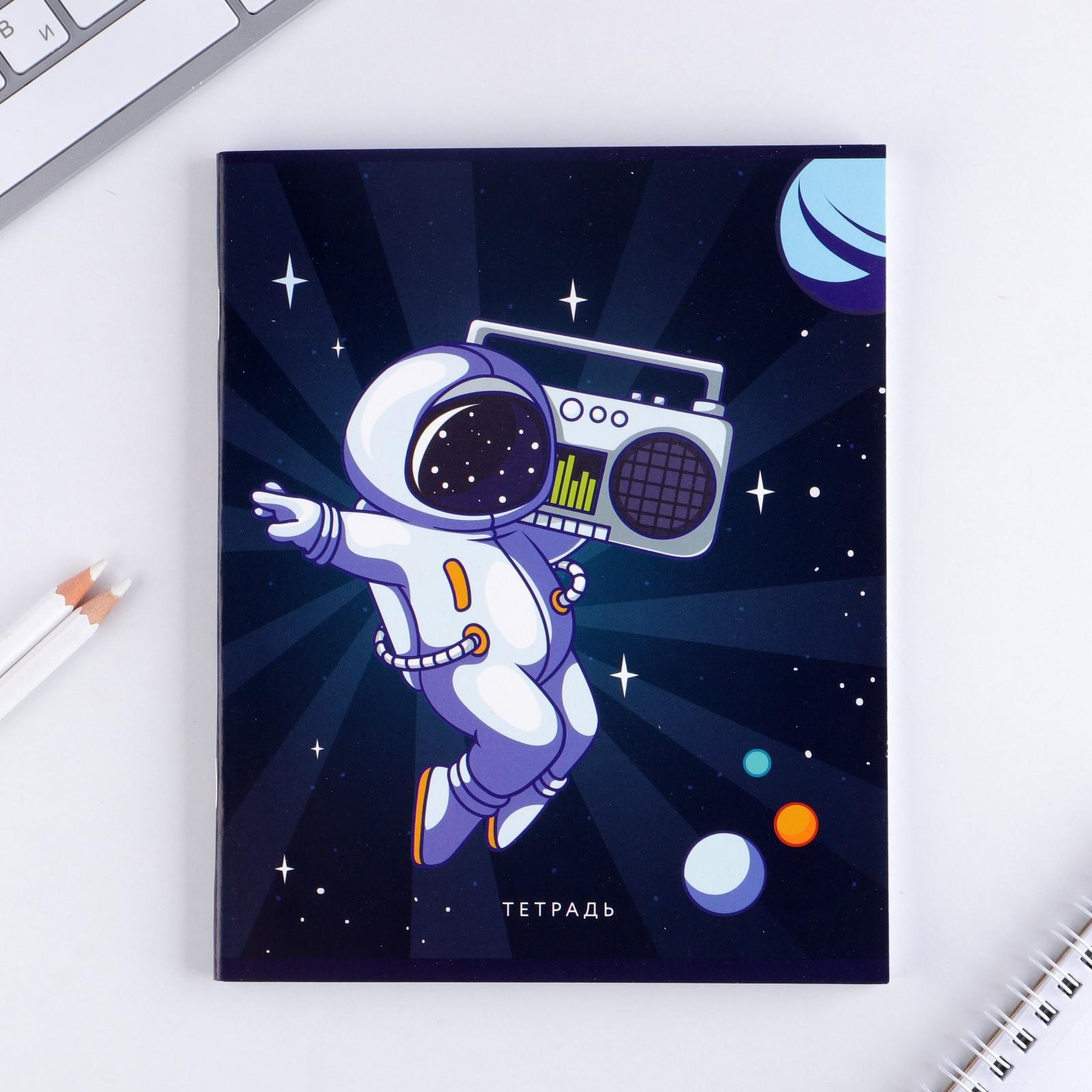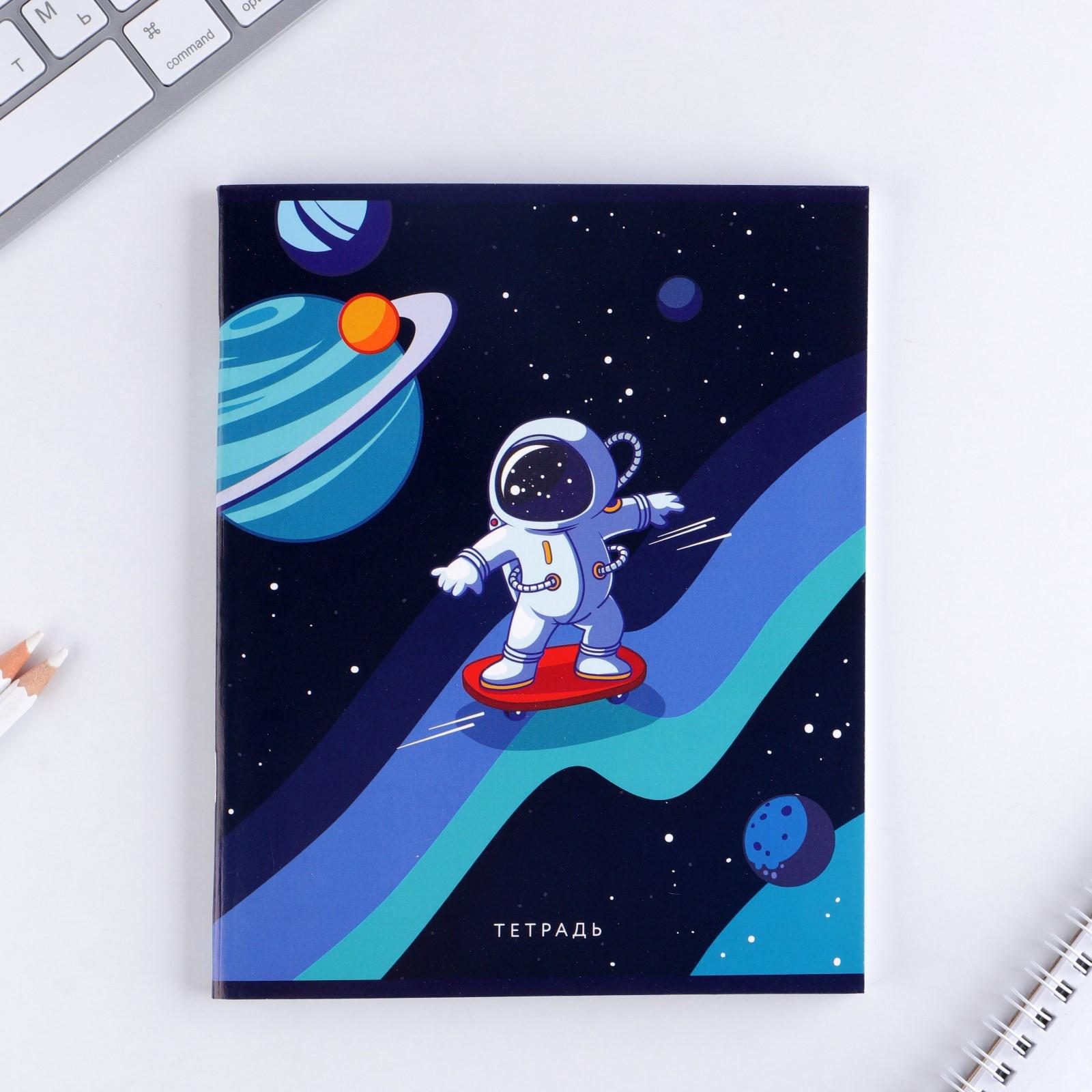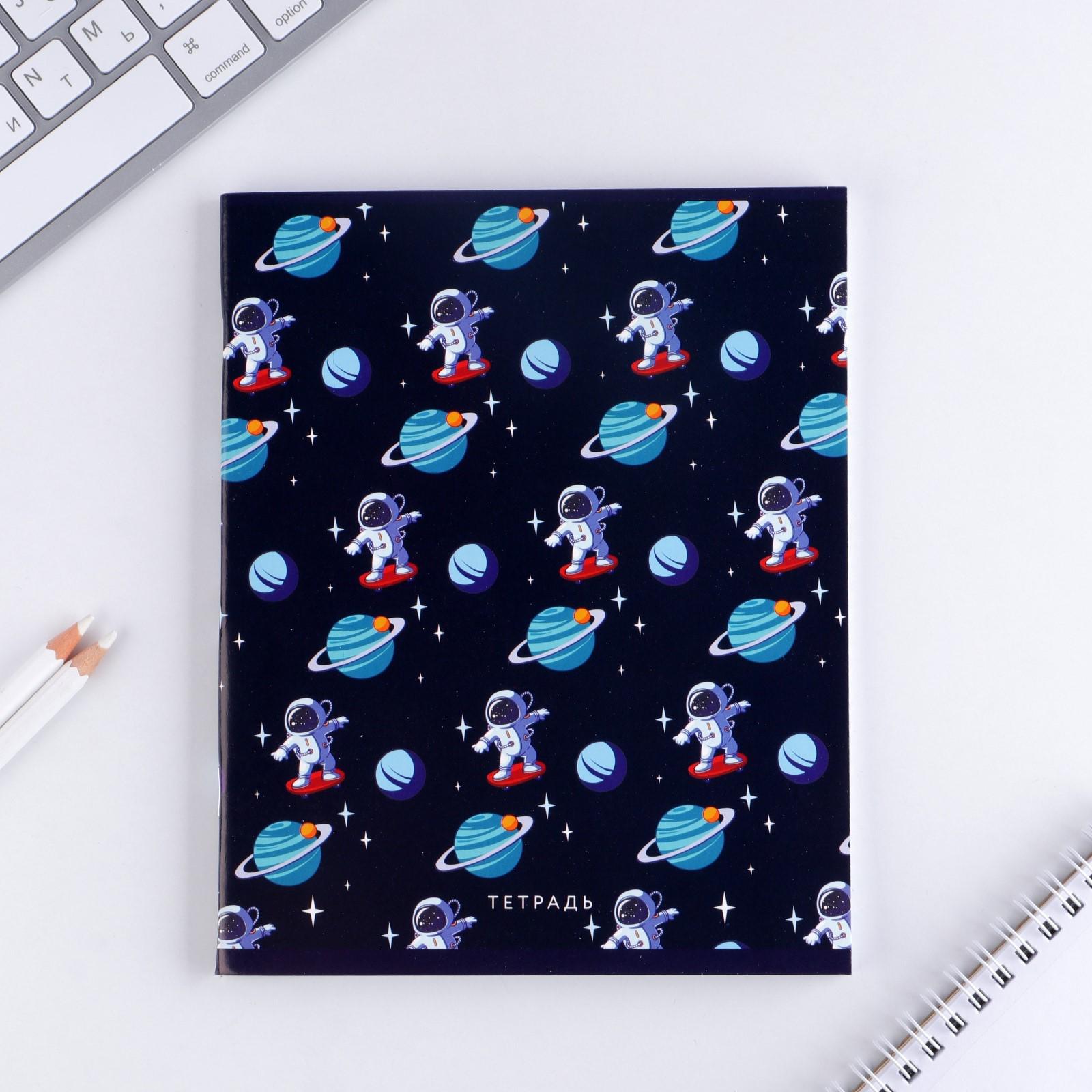 Тетрадь А5, 48 л на скрепке МИКС «Космический», обложка мелованный картон 230 гр., внутренний блок в клетку 80 гр., белизна 96%