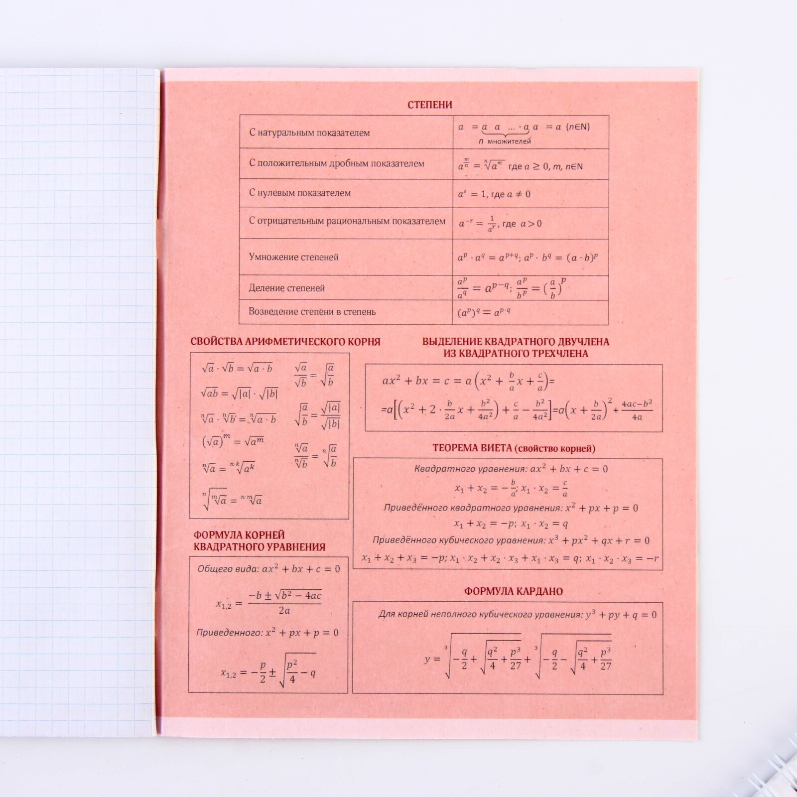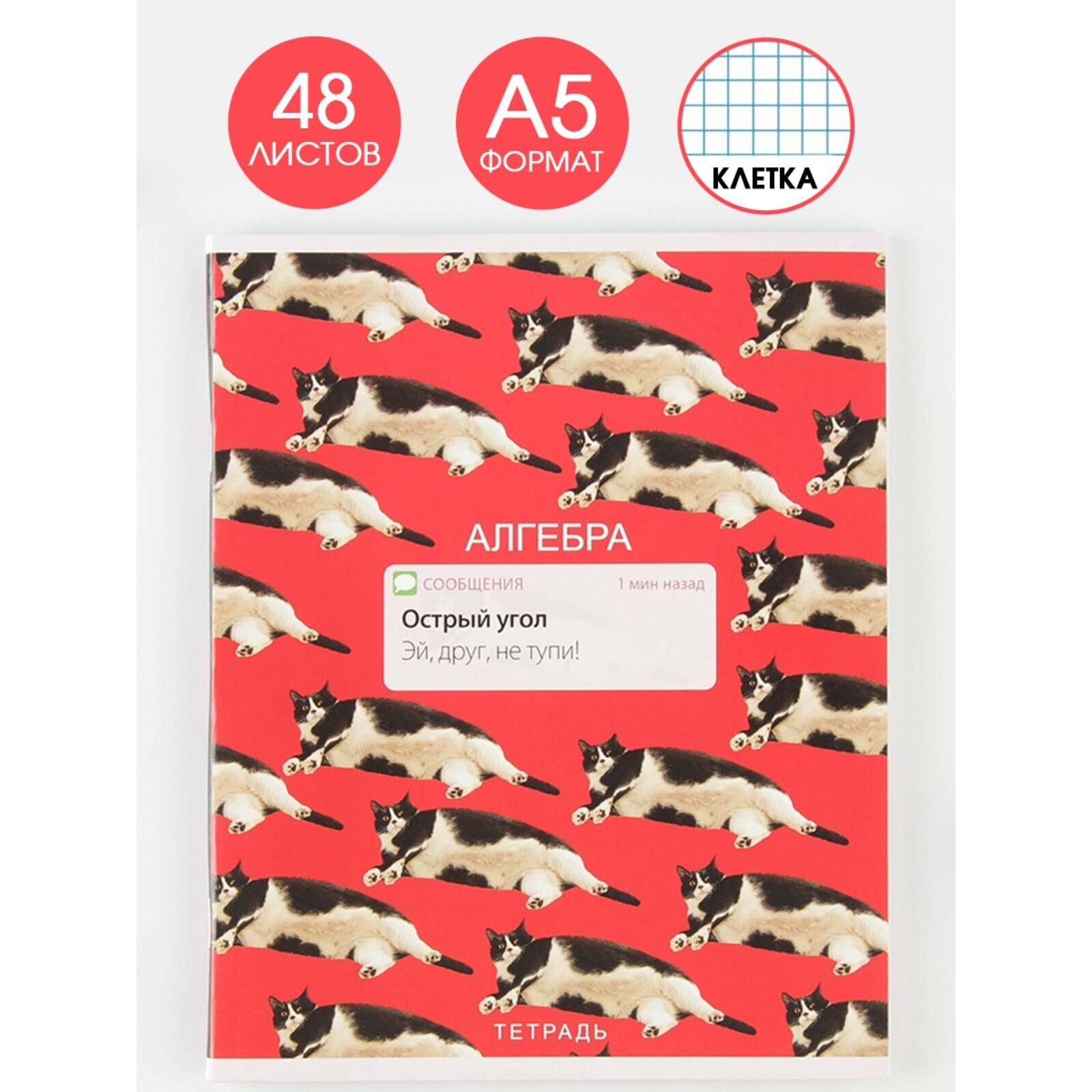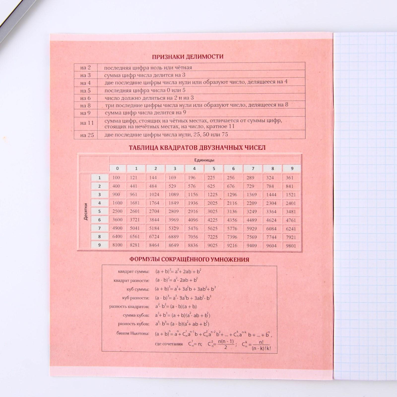 Предметная тетрадь, 48 листов, «УВЕДОМЛЕНИЯ», со справ. мат. «Алгебра», обложка мелованный картон 230 гр., внутренний блок в клетку 80 гр., белизна 96%