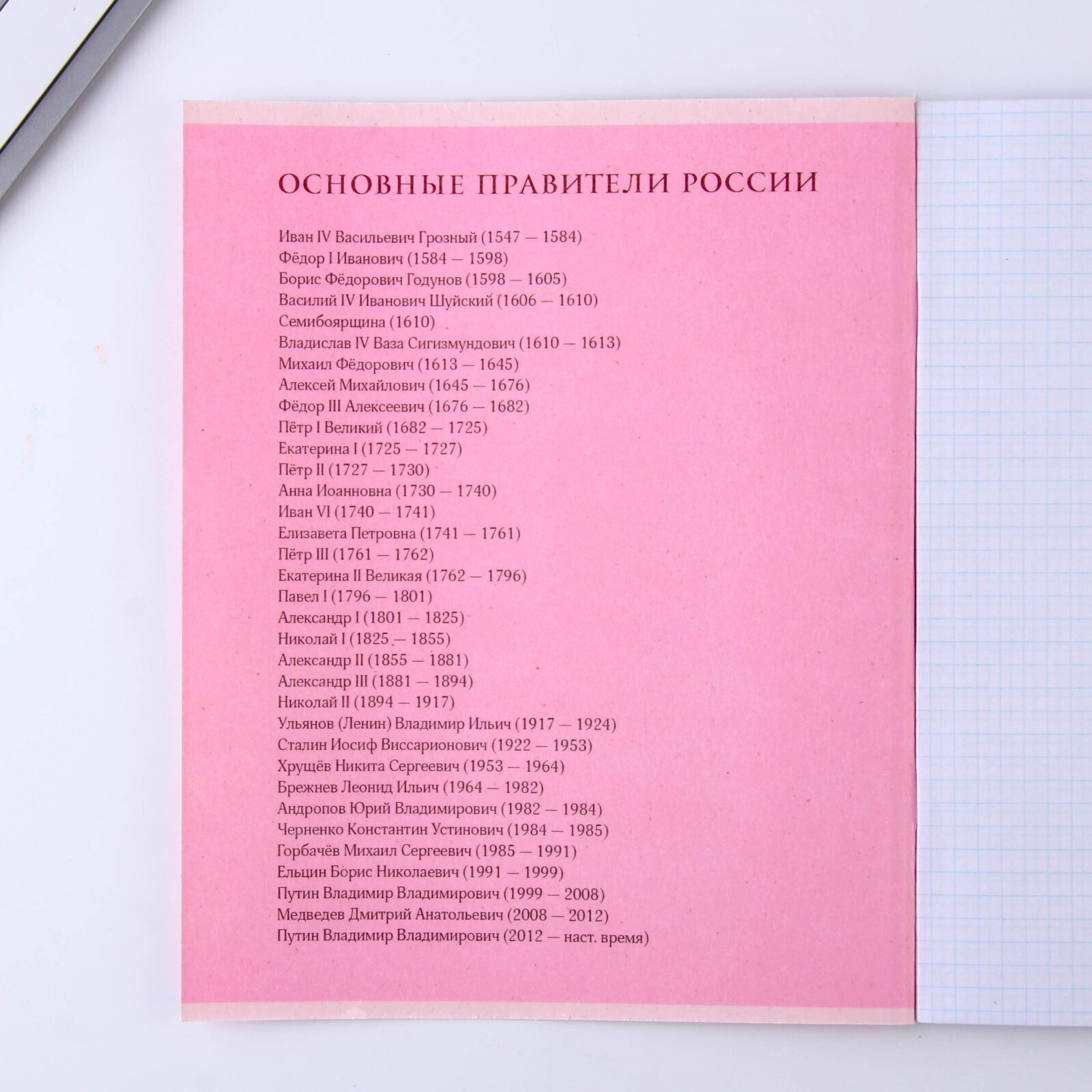 Предметная тетрадь, 48 листов, «РОЗОВАЯ СЕРИЯ», со справ. мат. «История», обложка мелованный картон 230 гр., внутренний блок в клетку 80 гр., белизна 96%