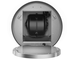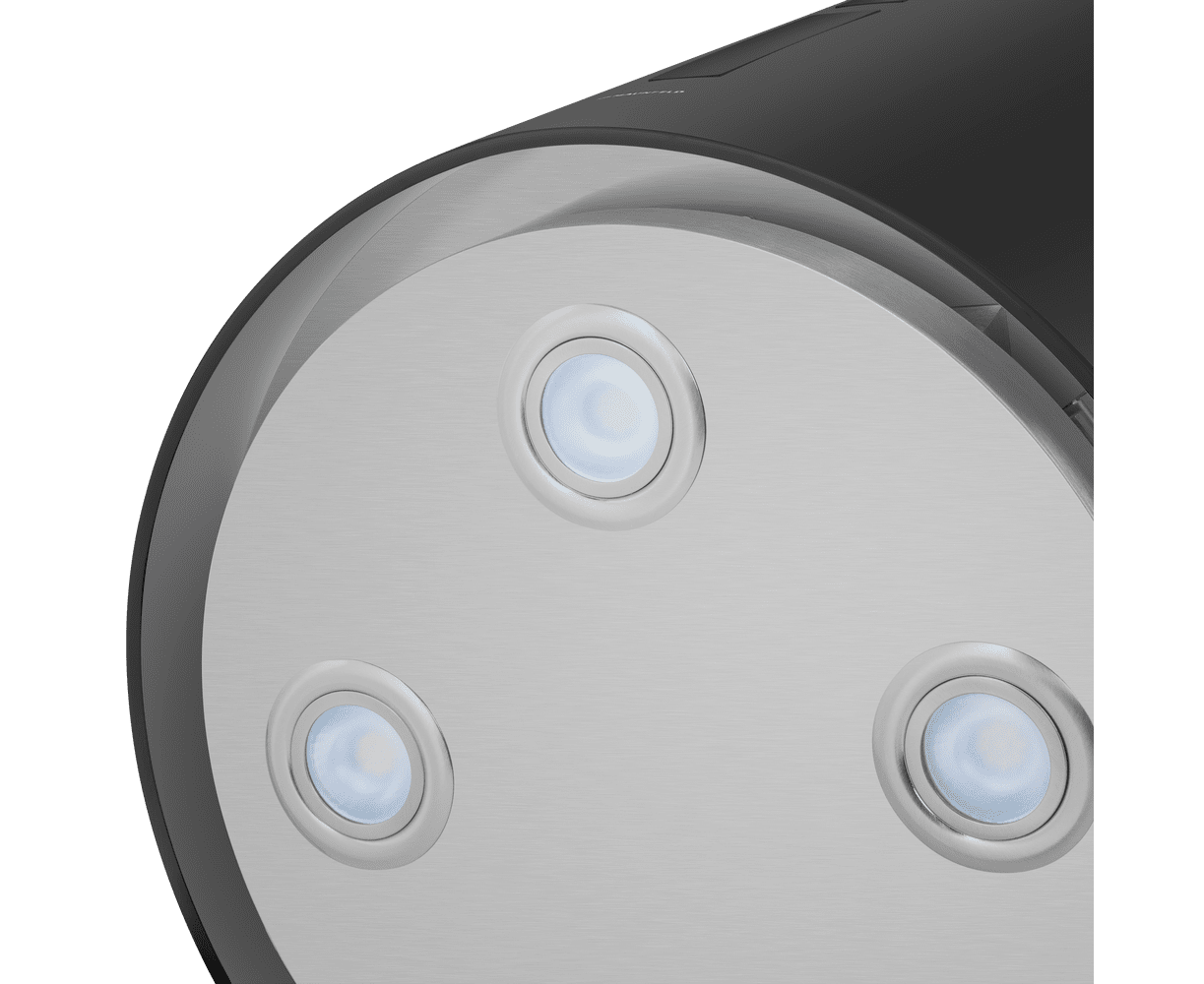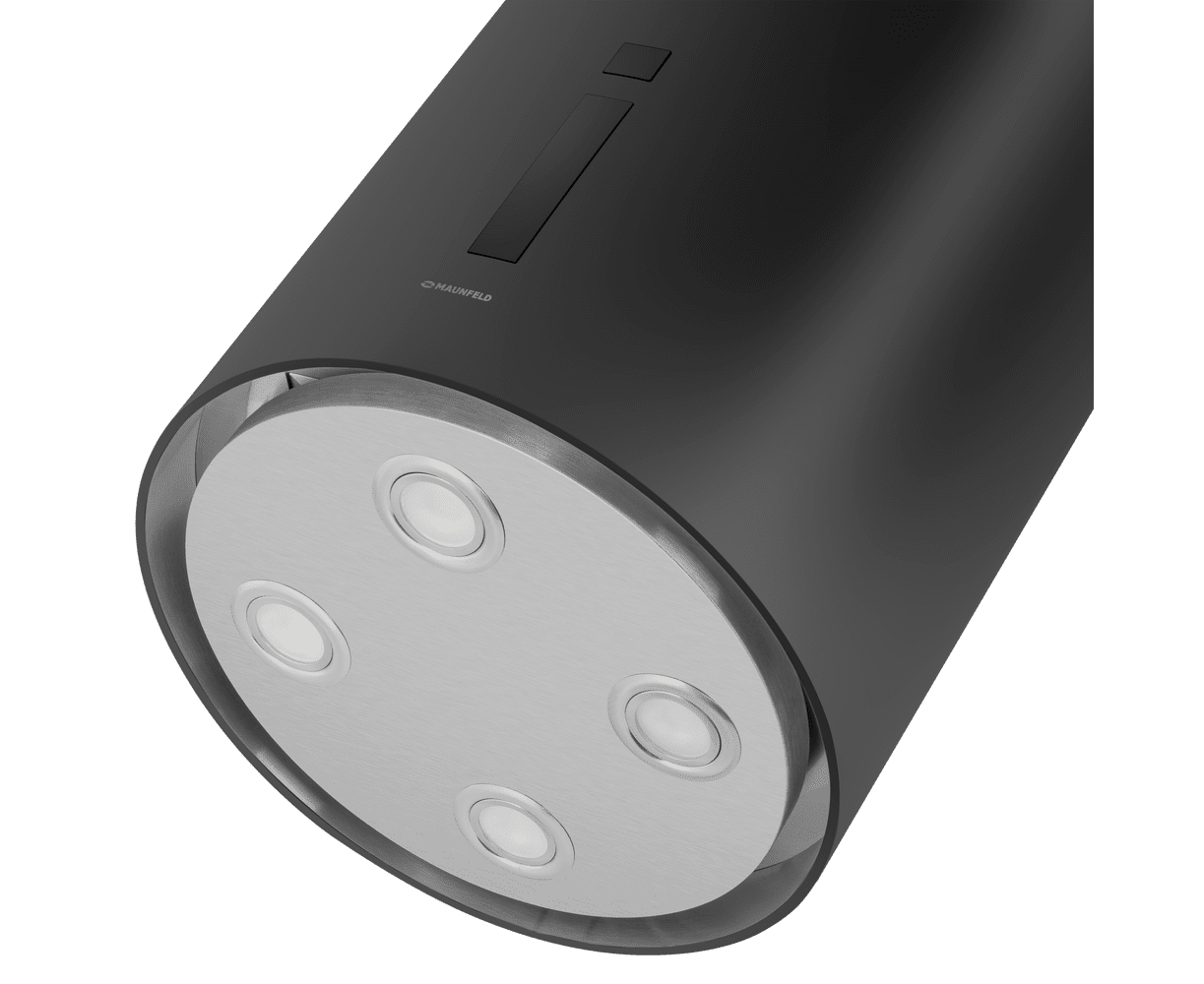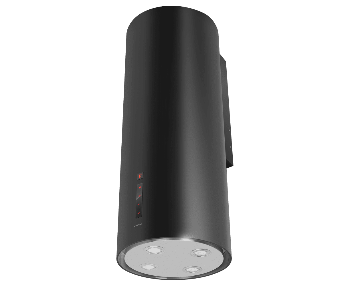 Корпус цилиндрической формы, сделанный из нержавеющей стали с термостойким покрытием, монтируется на стену над варочной поверхностью. Специальный многослойный жироулавливающий алюминиевый фильтр, расположенный в нижнем торце, легко снимается и полностью разбирается, что сильно упрощает его чистку.