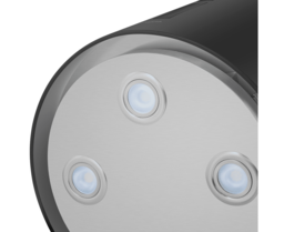 Сенсорное управление с подсветкой позволит выбрать один из 4-х режимов работы вентилятора, установить таймер и включить 4 светодиодные лампочки, расположенные по бокам от фильтра.