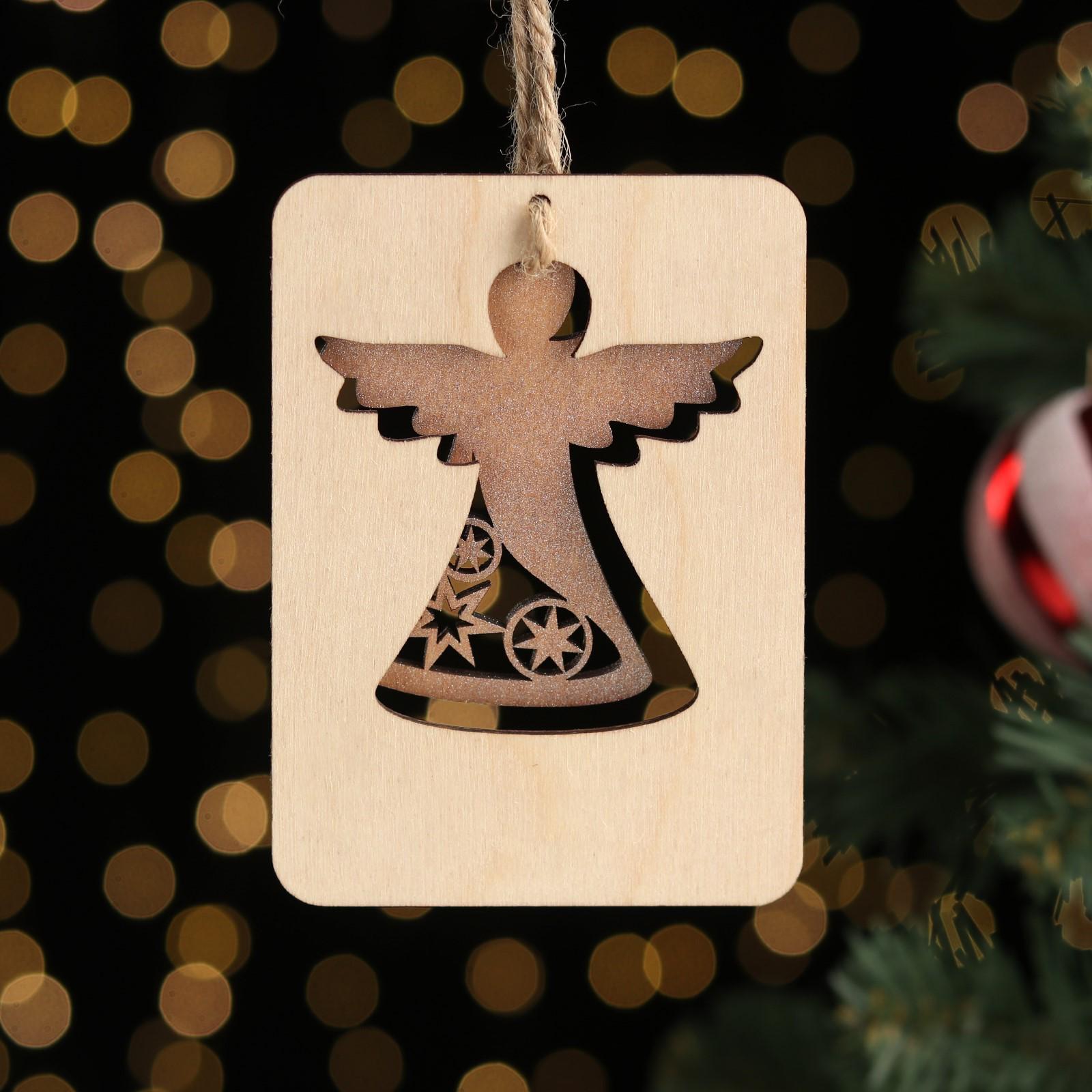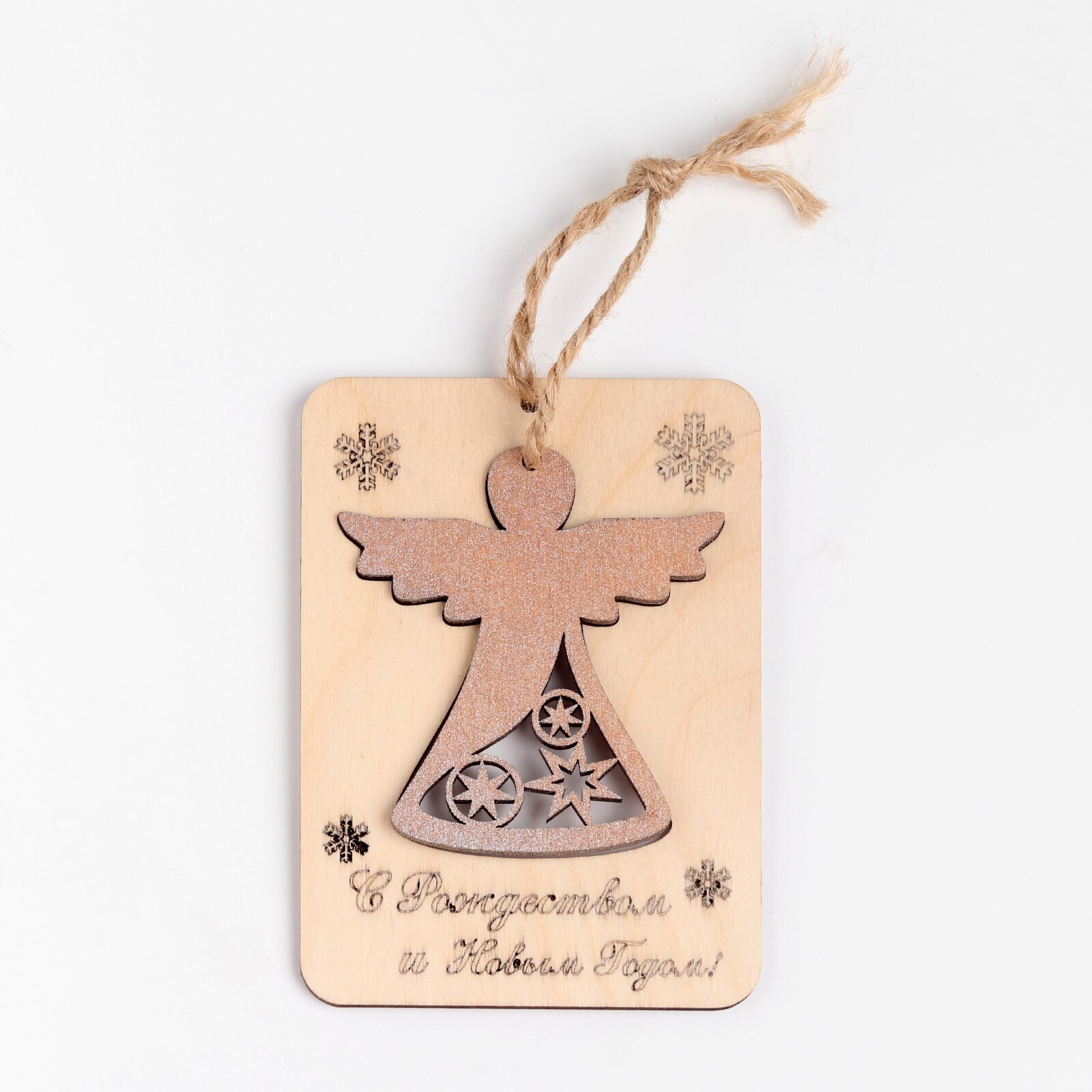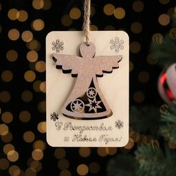 Шильдик "С Рождеством и Новым годом!" дерево, ангел, снежинки, 8,2х11,5 см
