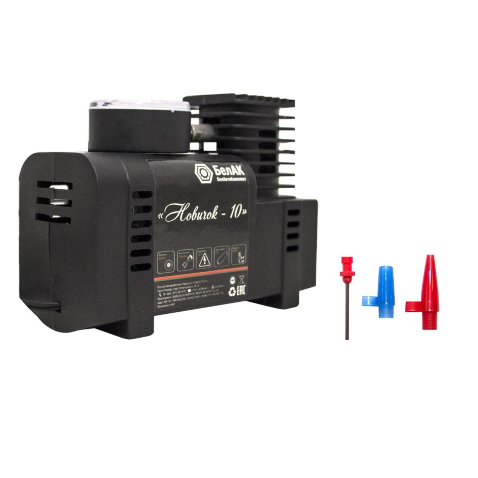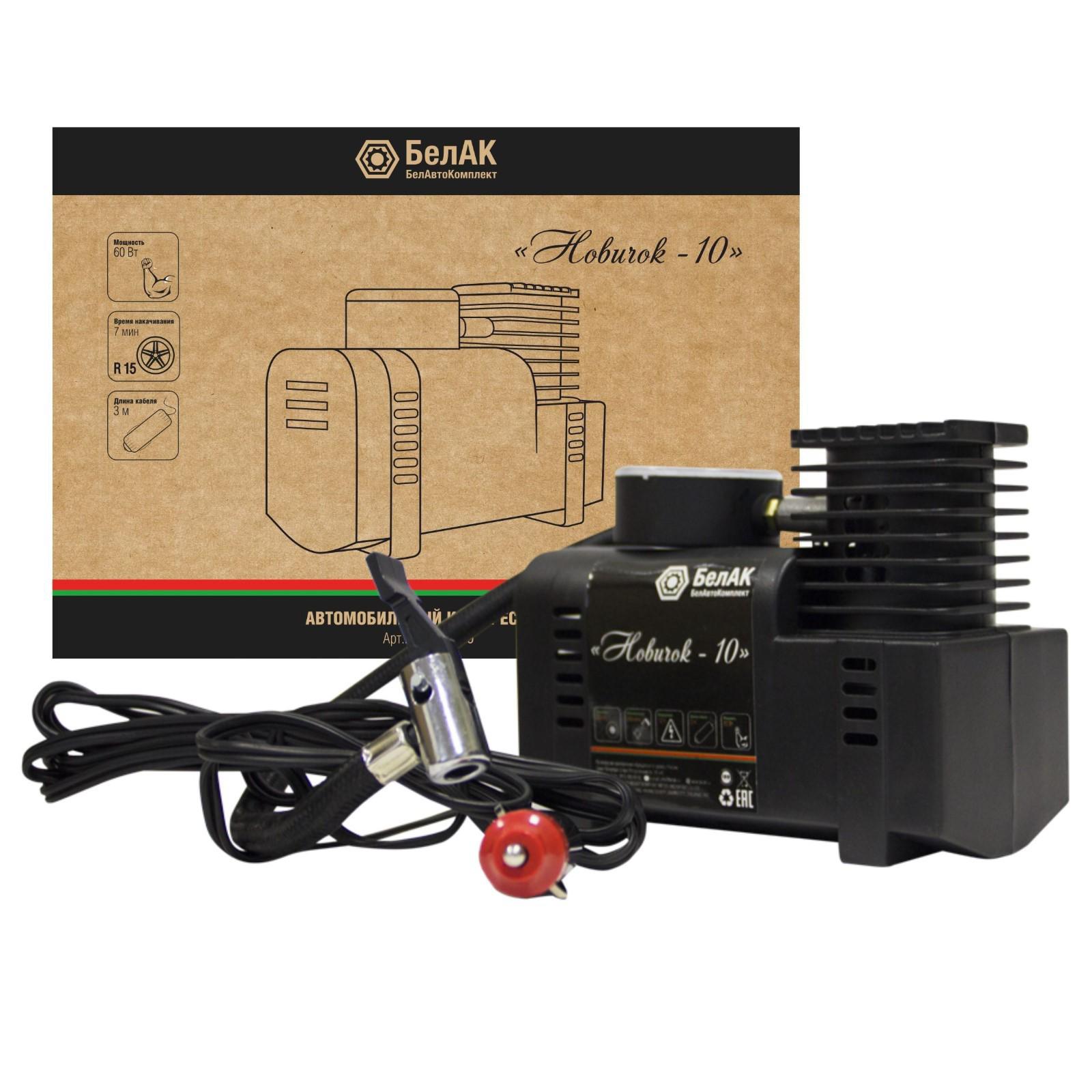 Автомобильный компрессор ""Новичок-10"" БАК.99159 разработан российским производителем «БелАК», награждённым девятью национальными премиями «Автокомпонент года» за высокое качество выпускаемой продукции. Компрессоры «БелАК» соответствуют нормам сертификации ISO9001 и ЕАС.