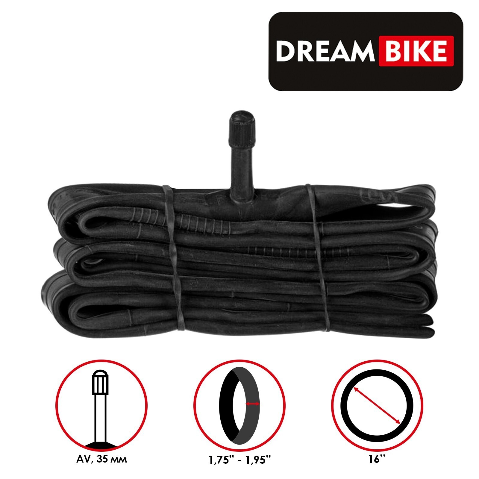 Камера 16"x1.75-1.95" Dream Bike, AV 35 мм, бутил, картонная коробка