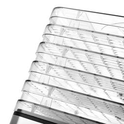 Корпус сушилки выполнен из высококачеcтвенного ABS пластика выполненный под металл. Через прозрачную конструкцию можно следить за процессом сушки.