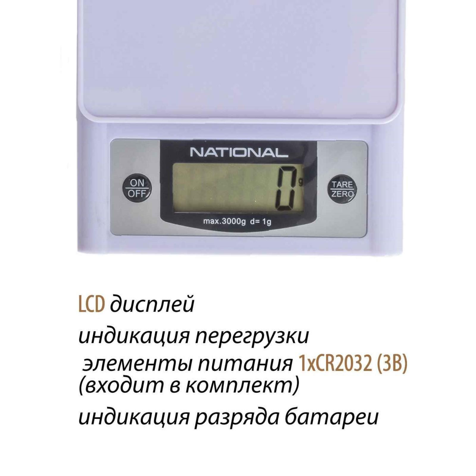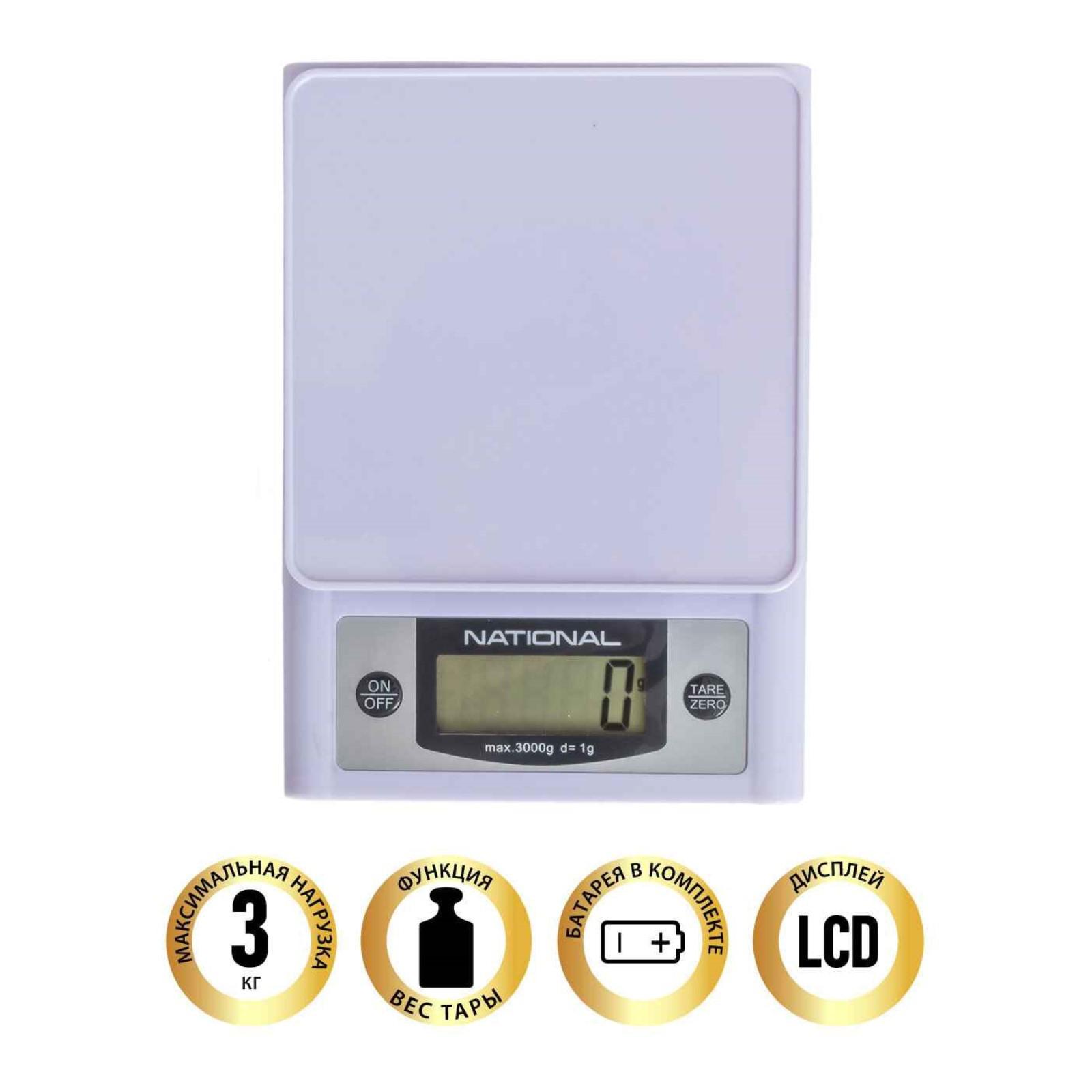 Весы кухонные National NB-BS1107K, электронные, до 3 кг, цвет белый