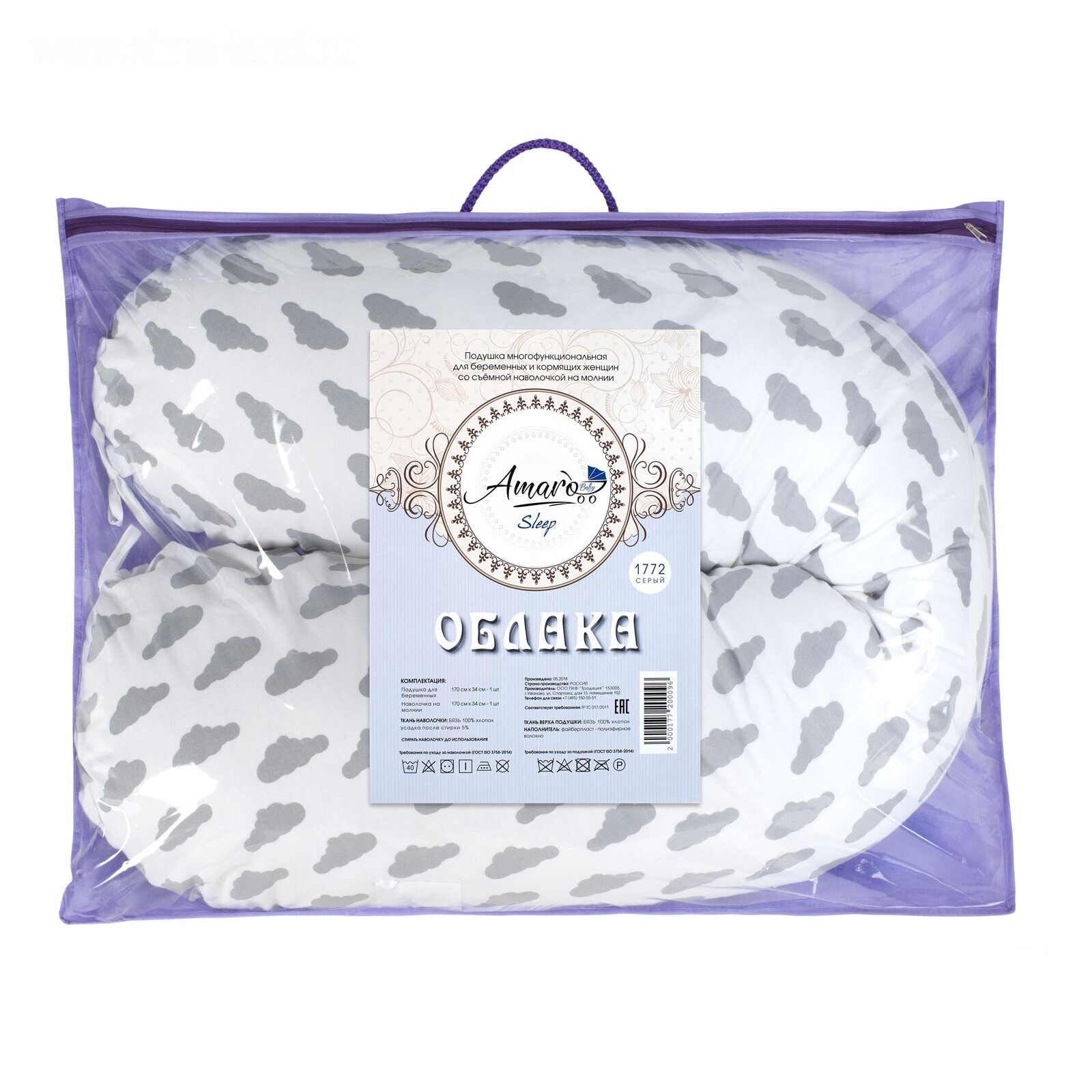 Подушка для беременных, размер 34 × 170 см, облака серый