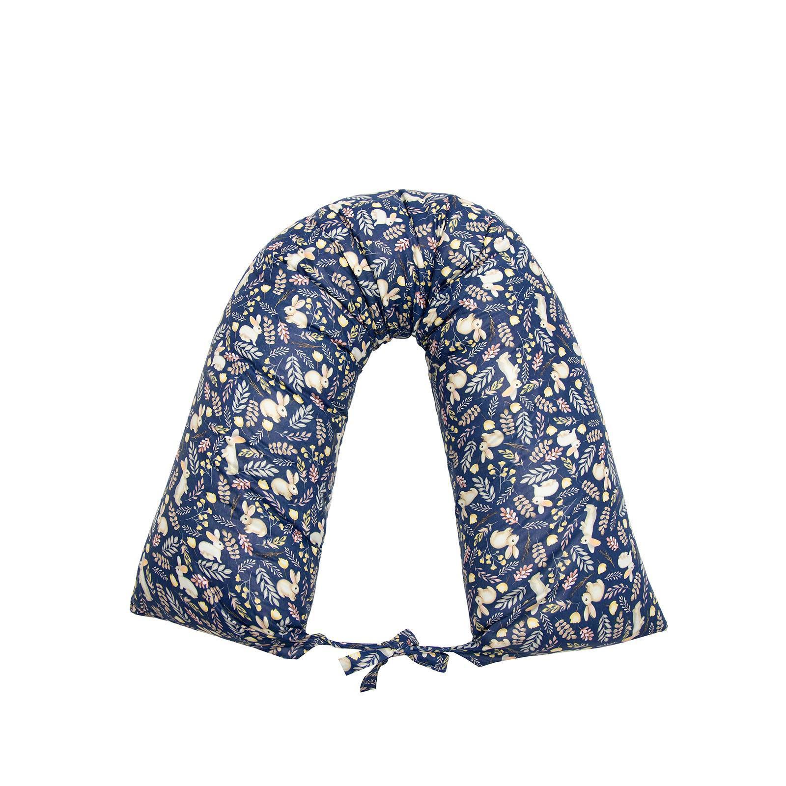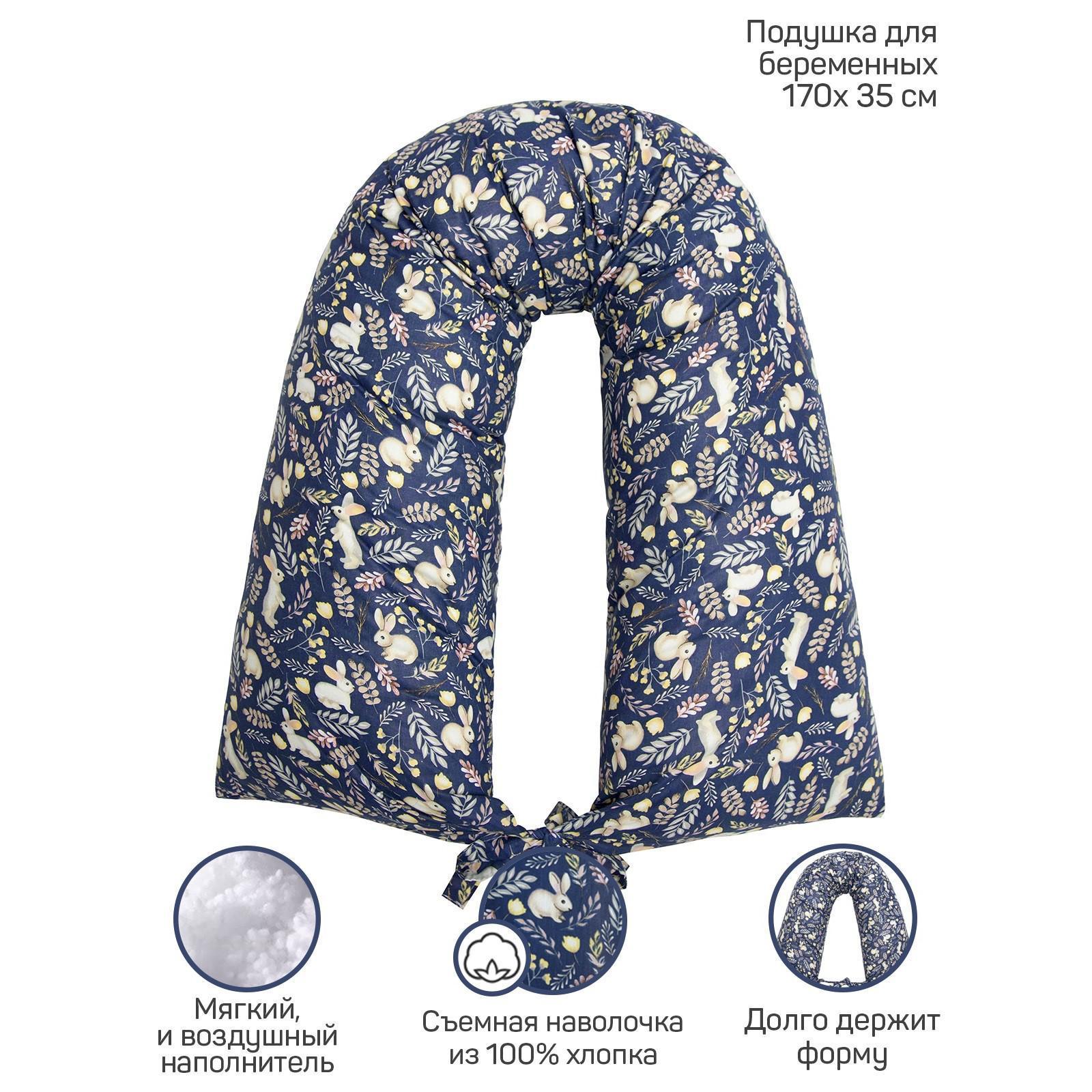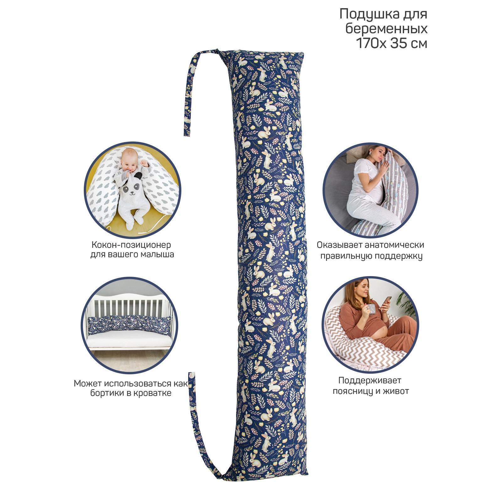 Подушка для беременных валик, размер 170х35 см, принт зайчата, цвет синий
