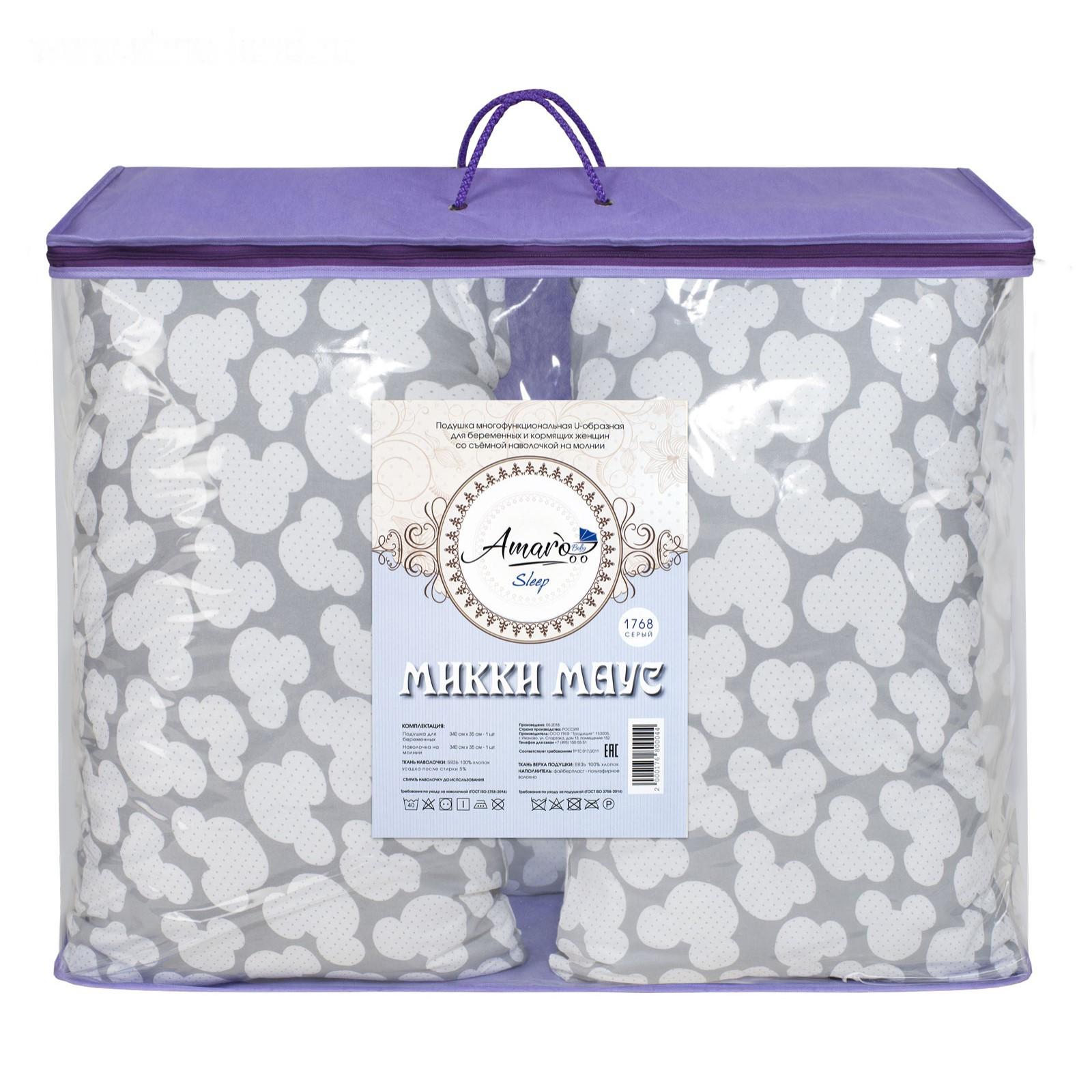 Подушка для беременных U-образная, размер 35 × 340 см, мышонок серый