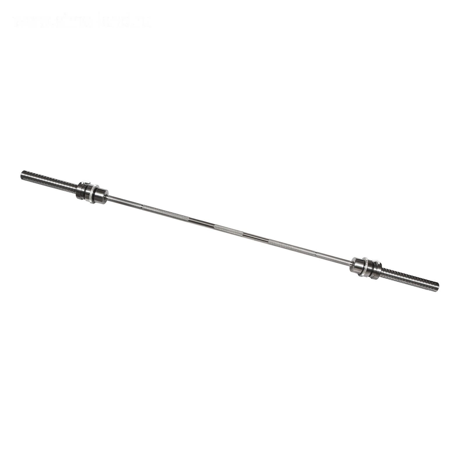 Металлический стержень со свободно вращающимися втулками на концах, на которые надеваются съёмные металлические диски для изменения веса штанги и замки для закрепления дисков. Применяется для занятий в бодибилдинге и фитнесе. Гриф изготовлен из стали (марка 45). Выполнен с нанесением комплексного гальванического покрытия из никеля и хрома. Гладкая втулка вращается на подшипнике скольжения. Используется замок с ломающимся стопором. Диски в комплект не входят.