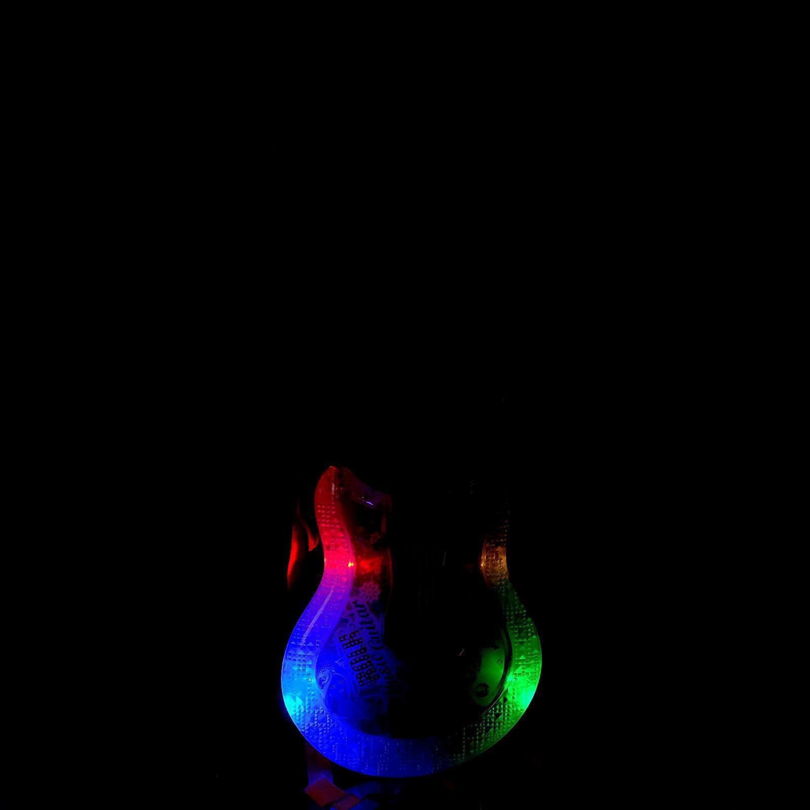 Гитара воспроизведёт 2 зажигательные мелодии и добавит к звучанию 6 различных эффектов. Во время исполнения инструмент светится, а микрофон усиливает голос. Малышка с удовольствием будет петь, придумывать собственные композиции и экспериментировать со звуками.