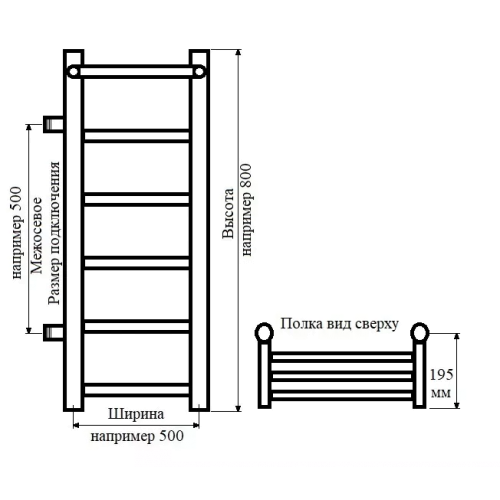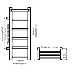 Полотенцесушитель Маргроид Вид 8 с полкой боковое подключение, форма - лесенка.