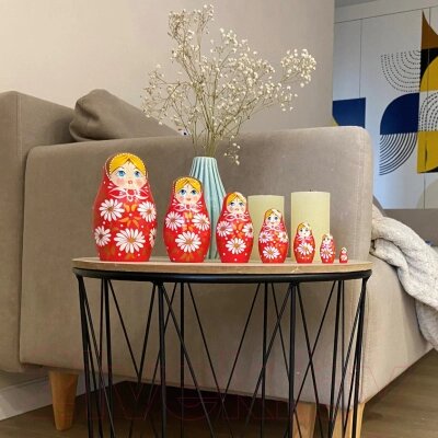 Матрешка сувенирная Брестская Фабрика Сувениров В красном наряде с ромашками 7037
